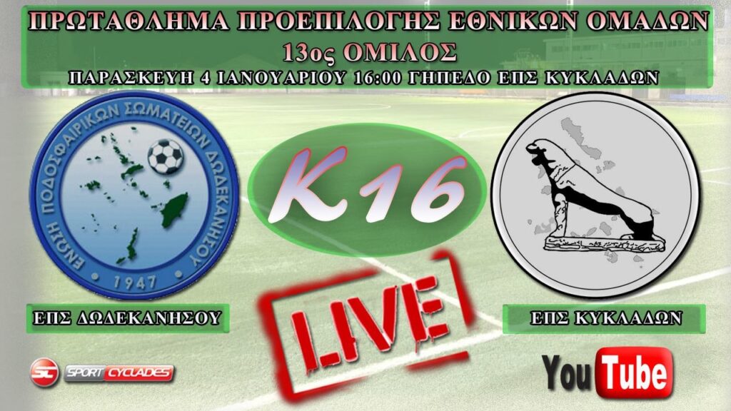 Live Streaming: (Κ-16) ΕΠΣ Δωδεκανήσου – ΕΠΣ Κυκλάδων