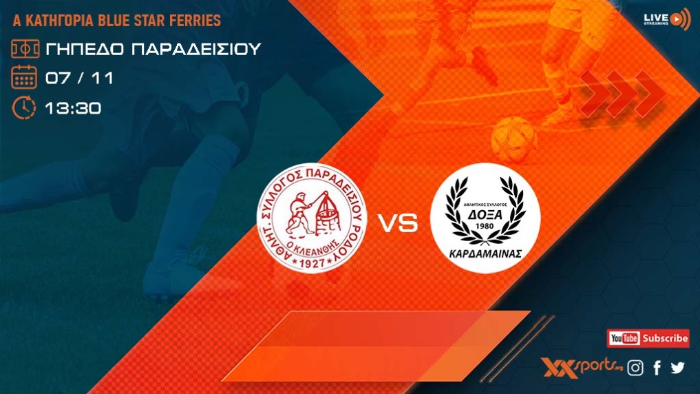 Live Streaming: Κλεάνθης Παραδεισίου – Δόξα Καρδάμαινας