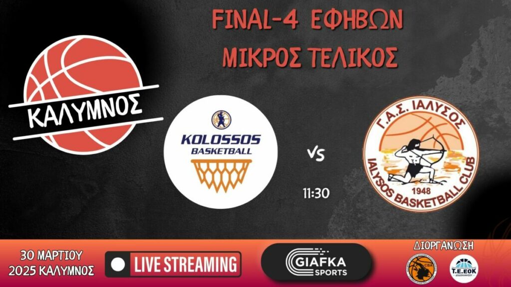 Παρακολουθήστε στις 11:30 τον μικρό τελικό των εφήβων ανάμεσα σε Κολοσσός και Ιάλυσο σε Live Streaming απ’ το giafkasports.gr