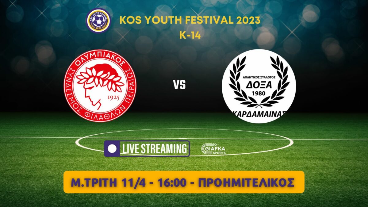 Παρακολουθήστε στις 16:15 τον προημιτελικό ανάμεσα σε Ολυμπιακό και Δόξα Καρδάμαινας για την κατηγορία Κ-14 του Kos Youth Festival 2023.