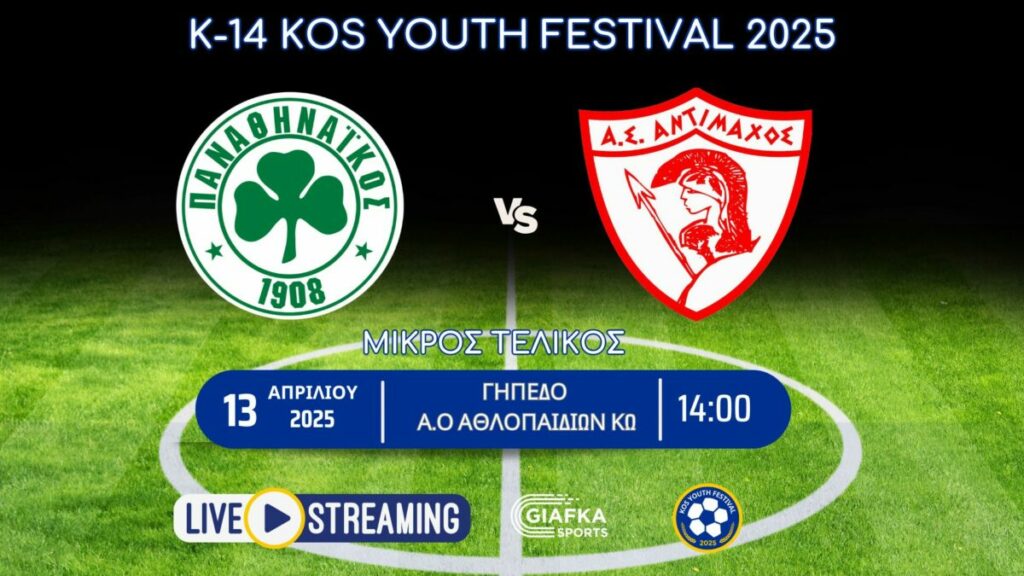 Home » Live Streaming: Παναθηναϊκός – Αντίμαχος | Κ-14 Μικρός τελικός 4ο Kos Youth Festival