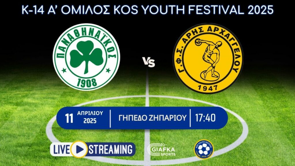 Home » Live Streaming: Παναθηναϊκός – Άρης Αρχαγγέλου | Κ-14 (17:40) | 4ο Kos Youth Festival
