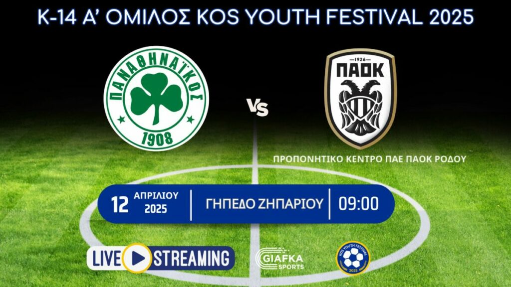 Live Streaming: Παναθηναϊκός – Π.Κ. ΠΑΟΚ Ρόδου | Κ-14 (09:00) | 4ο Kos Youth Festival