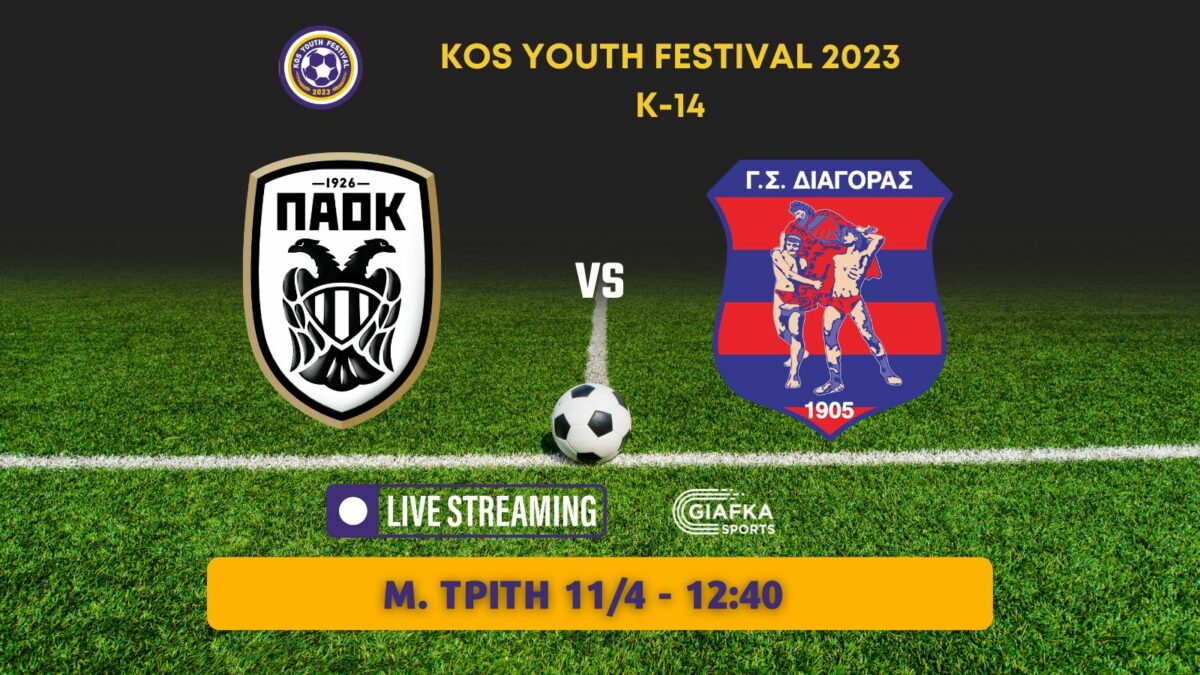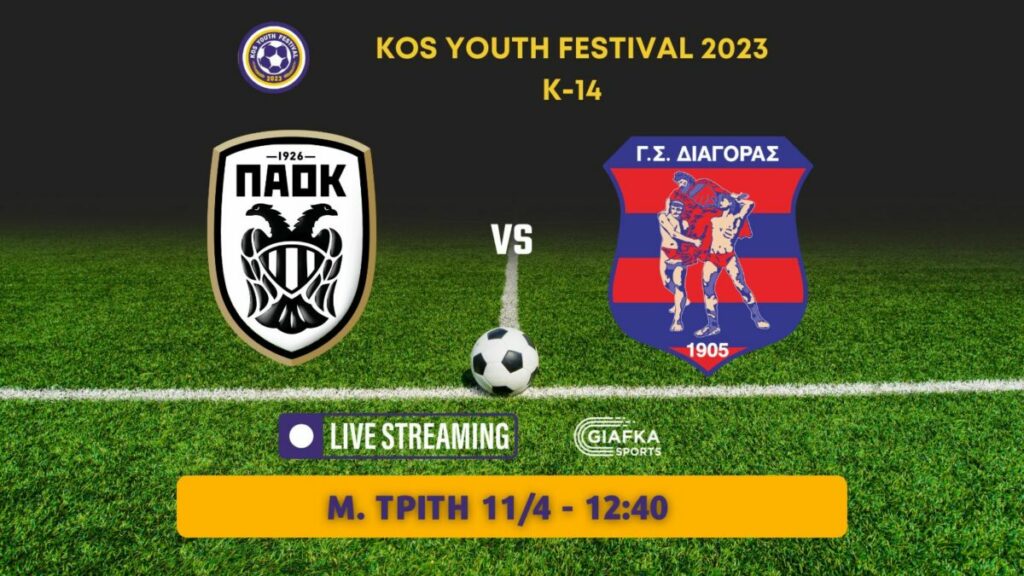 Παρακολουθήστε σε Live Streaming απ’ το giafkasports.gr στις 12:40 το για την Κ-14 ανάμεσα σε ΠΑΟΚ και Διαγόρα για το Kos Youth Festival 2023.