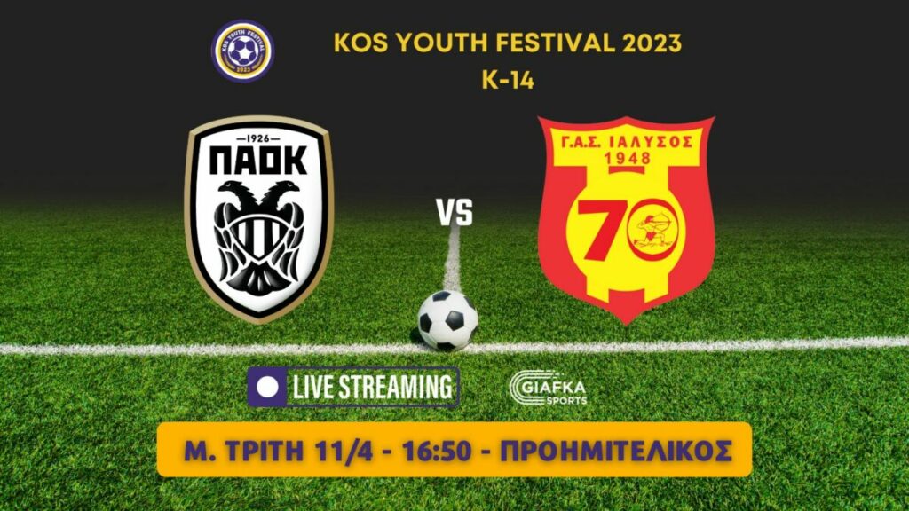 Παρακολουθήστε στις 16:50 σε Live Streaming τον προημιτελικό ανάμεσα σε ΠΑΟΚ και Ιάλυσο για το Kos Youth Festival 2023.