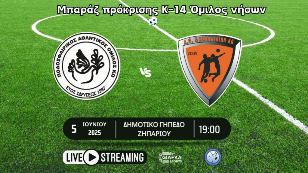 Live Streaming: ΠΑΟΚ Κω – Α.Ο Αθλοπαιδιών Κω | Μπαράζ πρόκρισης Κ-14