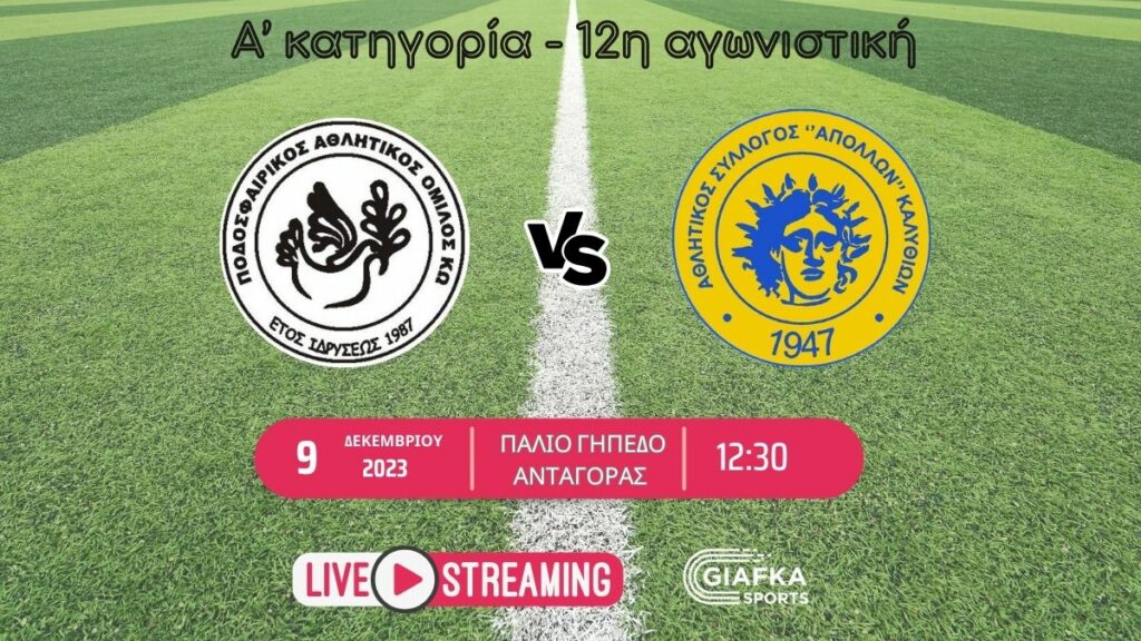 Live Streaming: ΠΑΟΚ Κω – Απόλλων Καλυθιών