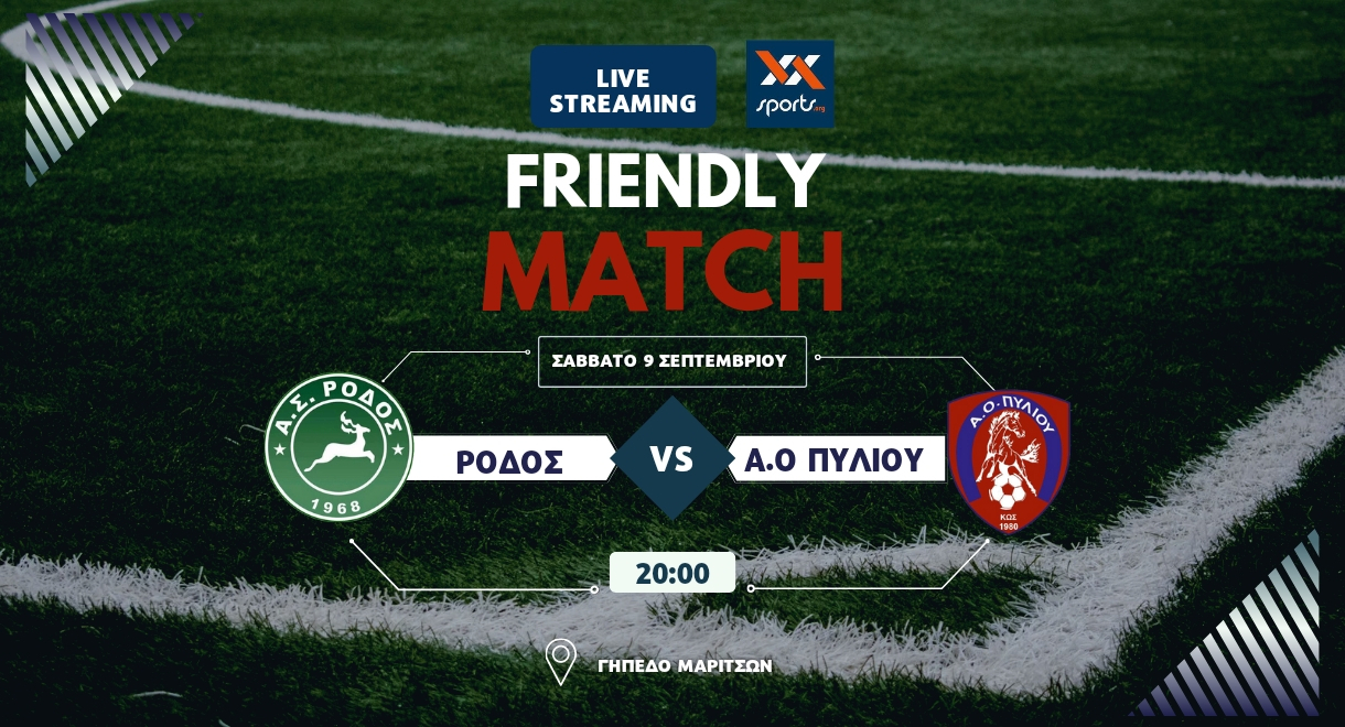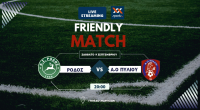 Δείτε στις 20:00 σε Live Streaming σε παραγωγή του xxsports.org την φιλική αναμέτρηση απ’ το γήπεδο Μαριτσών ανάμεσα σε Ρόδο και Α.Ο Πυλίου.