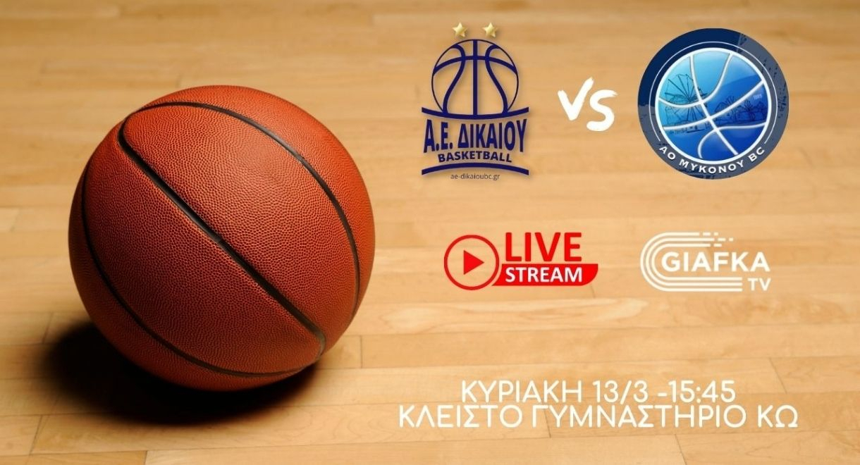 Live Streaming: Α.Ε Δικαίου – Α.Ο Μυκόνου
