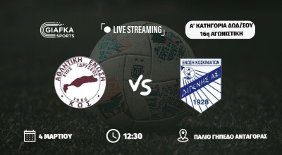 Για την 16η αγωνιστική της Α’ κατηγορίας (Β’ όμιλος) η Α.Ε Κως υποδέχεται τον Διγενή Κοσκινού στο παλιό γήπεδο Ανταγόρας. Παρακολουθήστε το ματς σε Live Streaming απ’ το giafkasports.gr.
