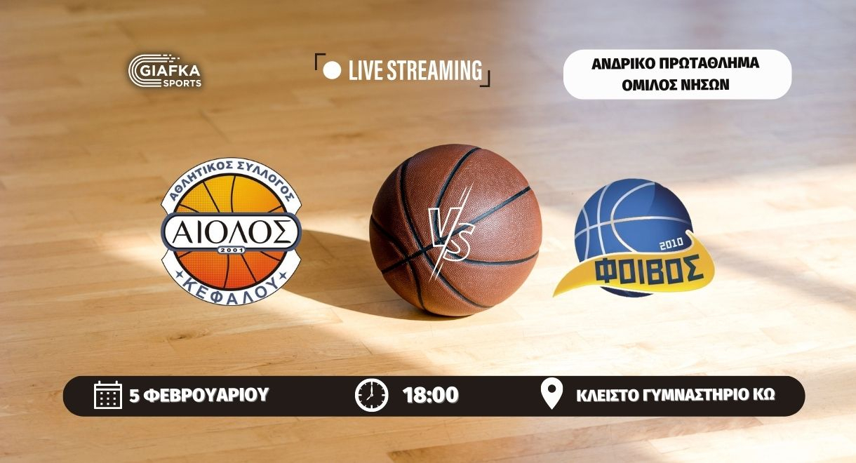Παρακολουθήστε σε Live Streaming απ’ το giafkasports.gr την Κυριακή 5/2 στις 18:00 την αναμέτρηση για την 5η αγωνιστική του Ομίλου νήσων ανάμεσα σε Αίολο Κεφάλου και Φοίβο.