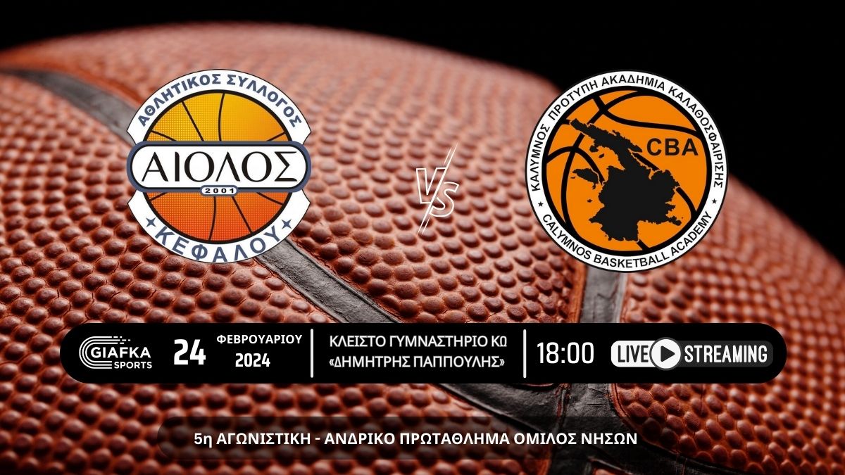 Για την εξ αναβολής αναμέτρηση της 5ης αγωνιστικής του Ομίλου νήσων ο Αίολος Κεφάλου υποδέχεται το Σάββατο 24 Φεβρουαρίου την Ακαδημία Καλύμνου στο Κλειστό γυμναστήριο «Δημήτρης Παππούλης». Παρακολουθήστε το ματς σε Live Streaming απ’ το giafkasports.gr