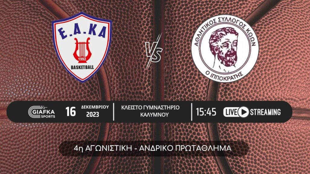 Για την 4η αγωνιστική του ανδρικού πρωταθλήματος η Ε.Α.ΚΑ υποδέχεται το Σάββατο 16/12 στις 15:45 στο Κλειστό γυμναστήριο Καλύμνου τον Ιπποκράτη. Παρακολουθήστε το ματς σε Live Streaming απ’ το giafkasports.gr