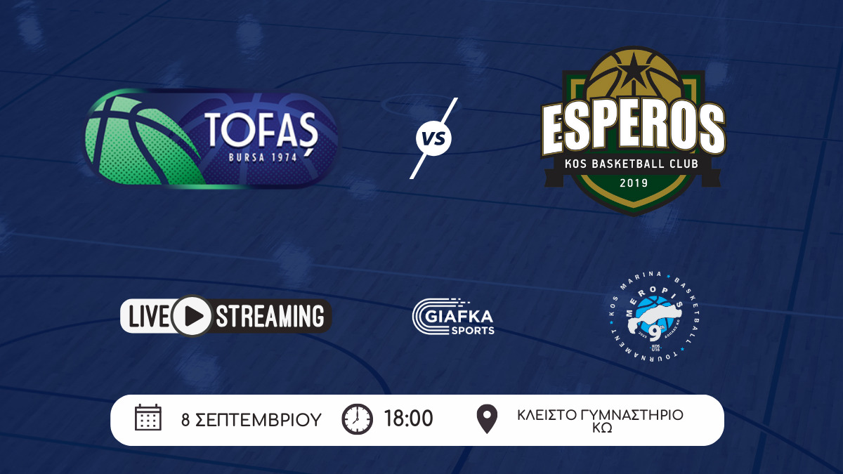 Παρακολουθήστε το ματς της 2ης ημέρας ανάμεσα σε Tofas και Έσπερο την Παρασκευή 8/9 στις 18:00.