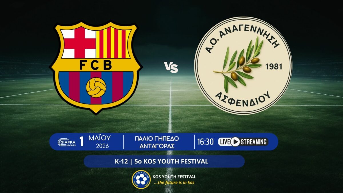 • Live Streaming: Βarcelona – Ρόδος | Κ-12 5ο Kos Youth Festival (1/5/2026)