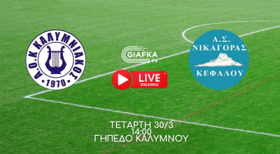 Δείτε την Τετάρτη 30/3 στις 14:00 σε Live Streaming απ’ το γήπεδο Καλύμνου το ντέρμπι για την 12η αγωνιστική της Β’ κατηγορίας του Ομίλου νήσων ανάμεσα σε Καλυμνιακό και Νικαγόρα.