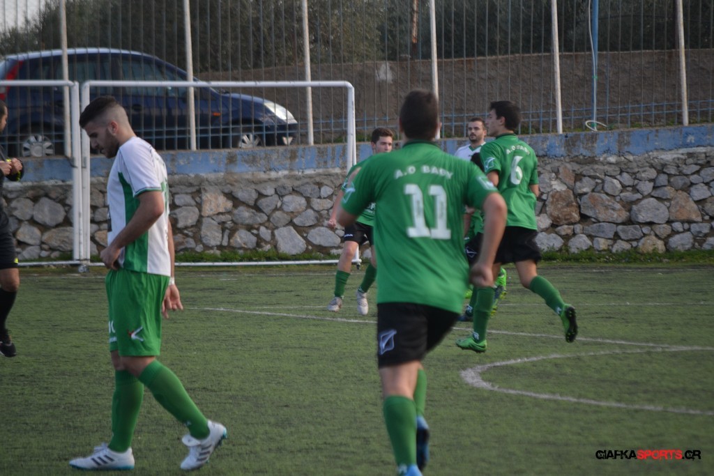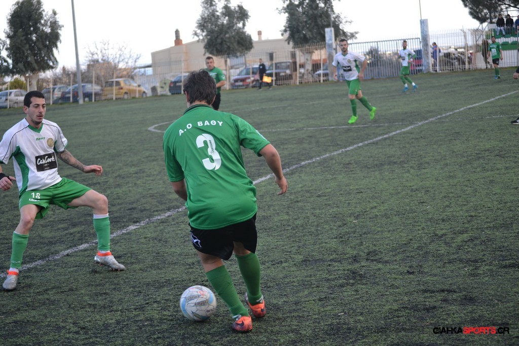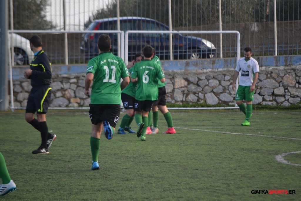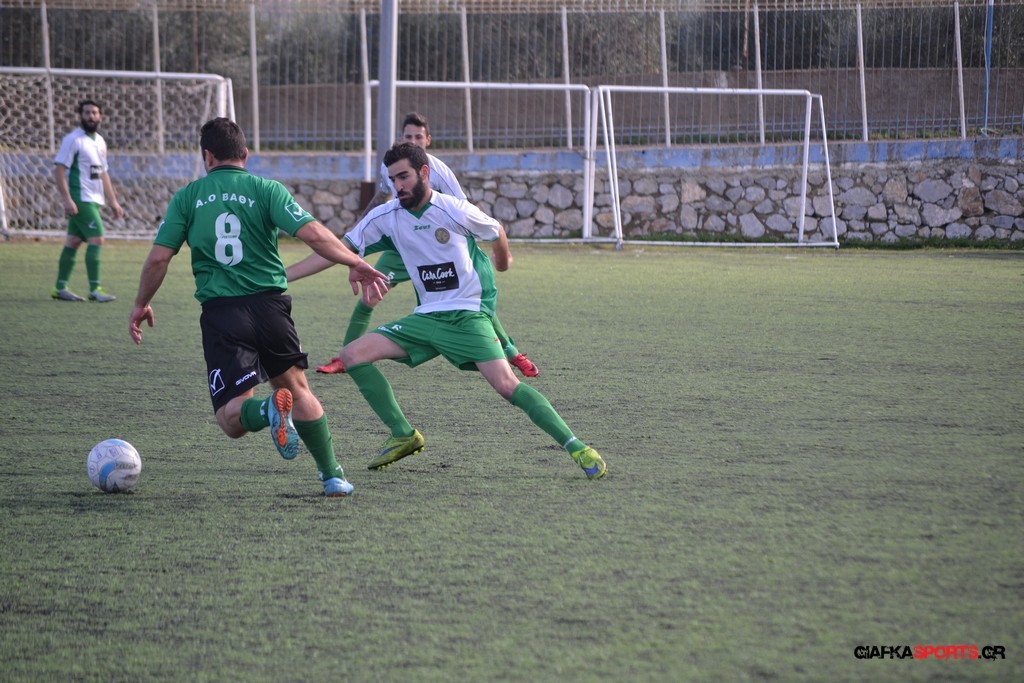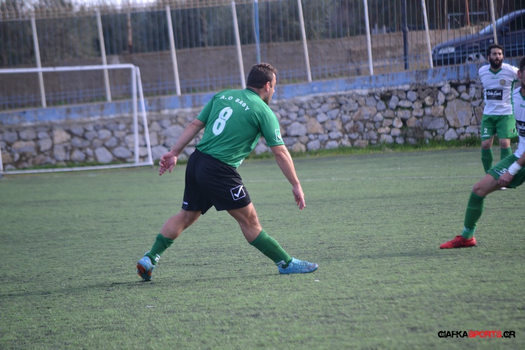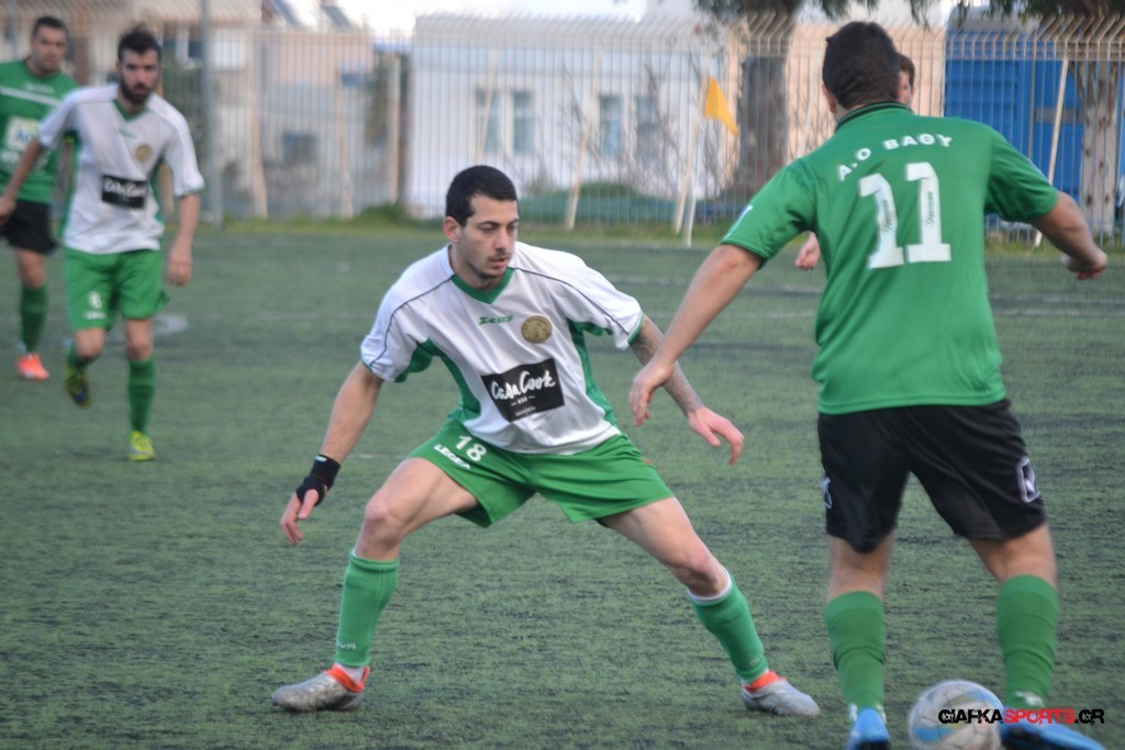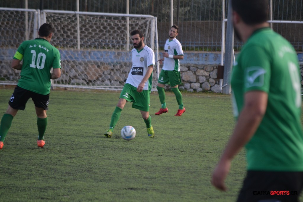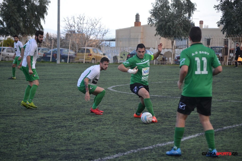 Το Βαθύ προσπάθησε απ’ τα πλάγια να χτυπήσει και το κατάφερε οκτώ λεπτά αργότερα όταν ο Μαλλιάς έκανε την επικίνδυνη σέντρα σουτ και με ένα υπέροχο σουτ έστειλε την μπάλα στην αριστερή γωνία του Χατζηβασίλη κάνοντας το 1-1 που ήταν και το αποτέλεσμα του πρώτου μέρους.