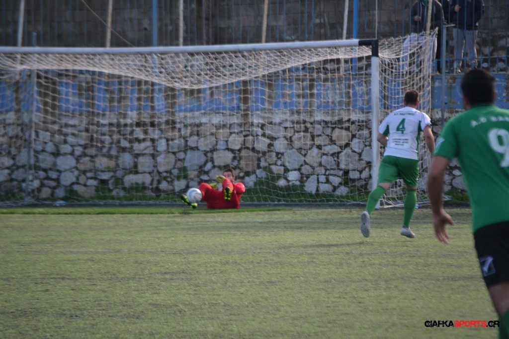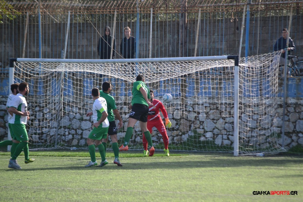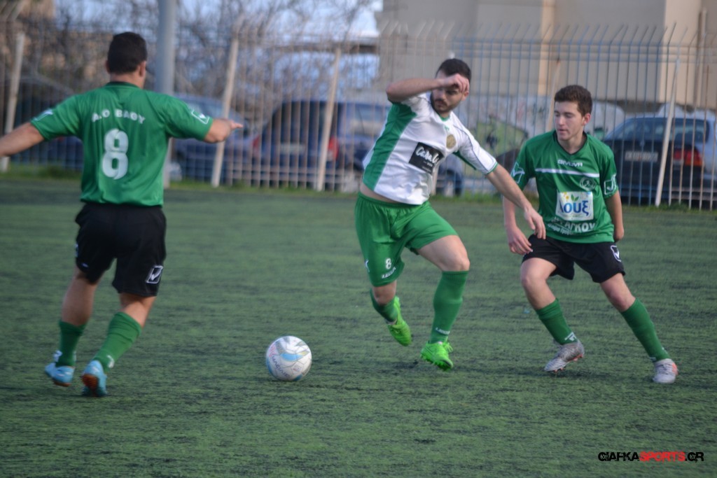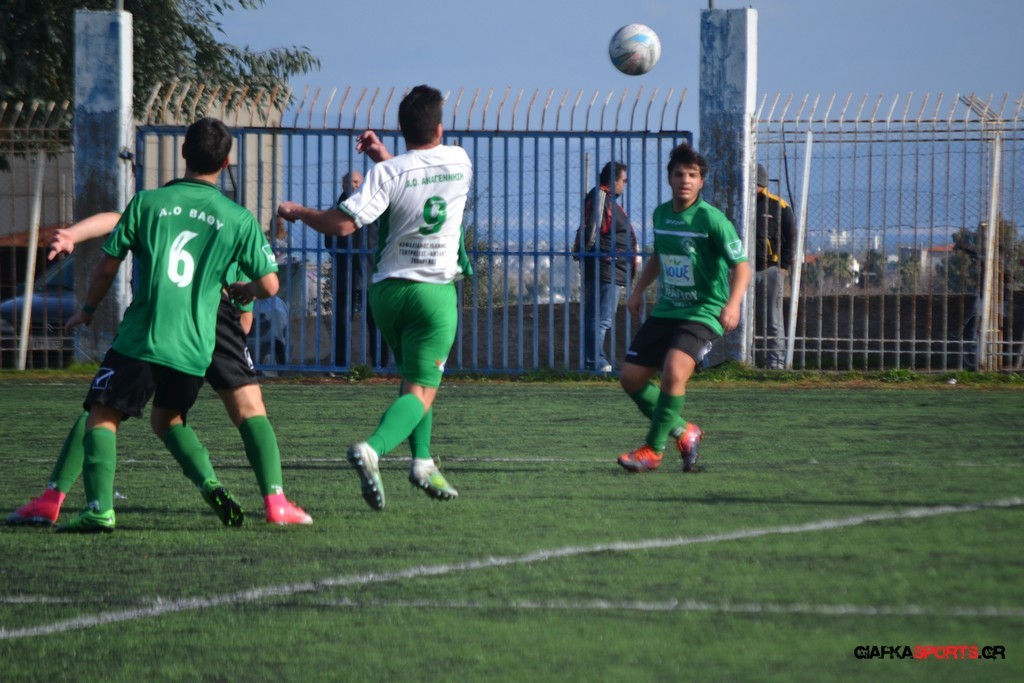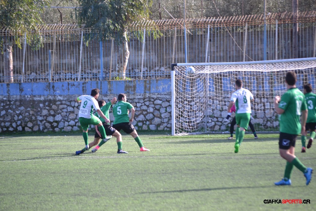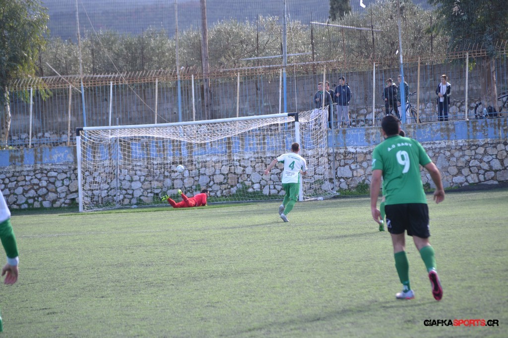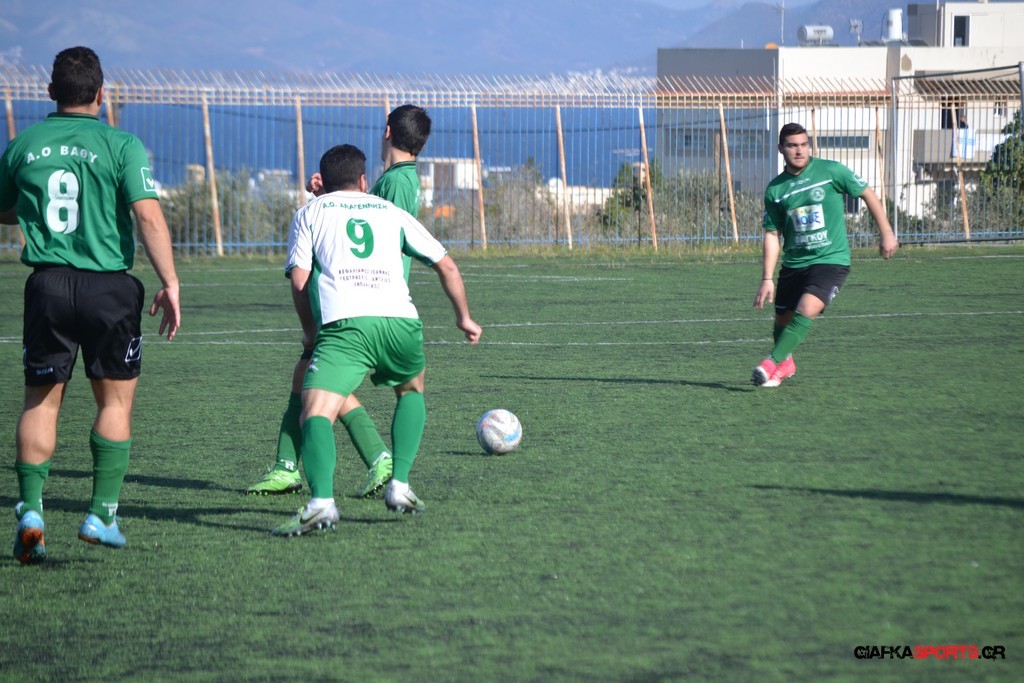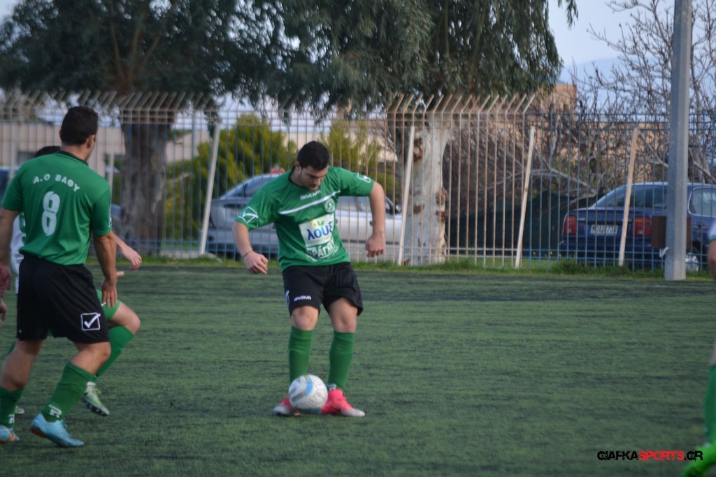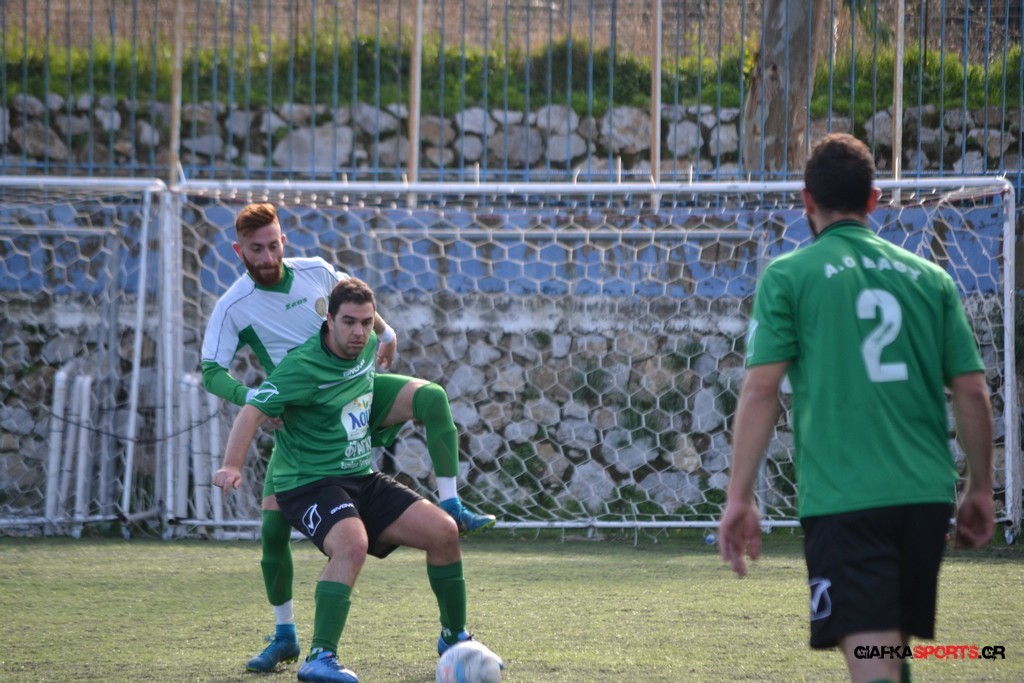 Το Βαθύ προσπάθησε απ’ τα πλάγια να χτυπήσει και το κατάφερε οκτώ λεπτά αργότερα όταν ο Μαλλιάς έκανε την επικίνδυνη σέντρα σουτ και με ένα υπέροχο σουτ έστειλε την μπάλα στην αριστερή γωνία του Χατζηβασίλη κάνοντας το 1-1 που ήταν και το αποτέλεσμα του πρώτου μέρους.