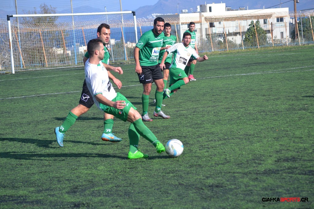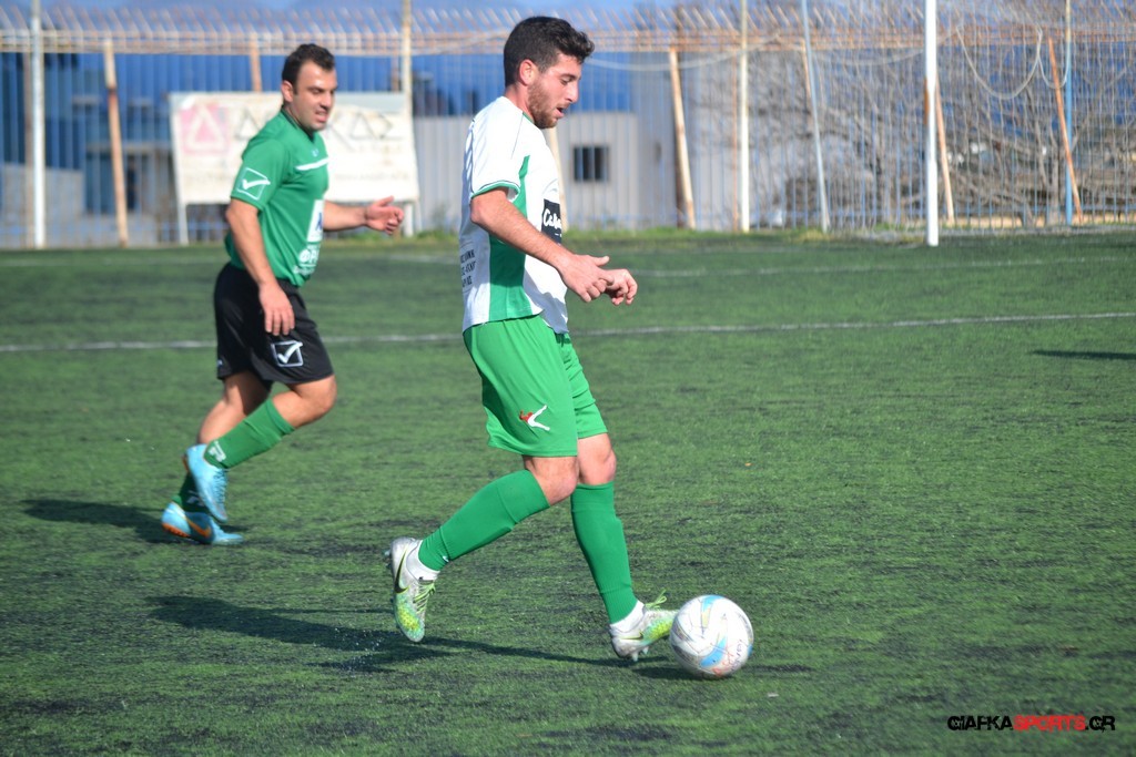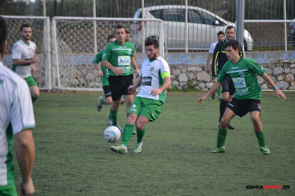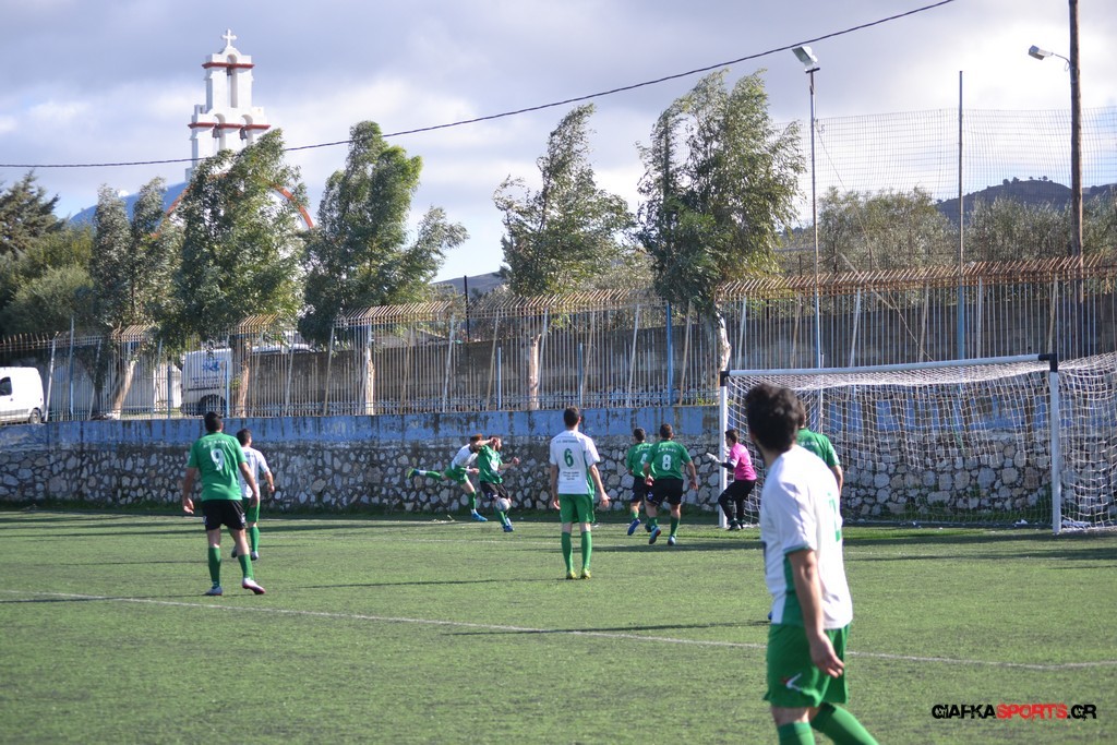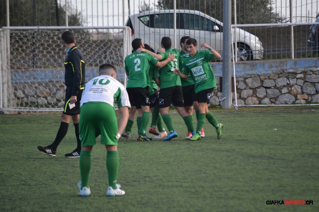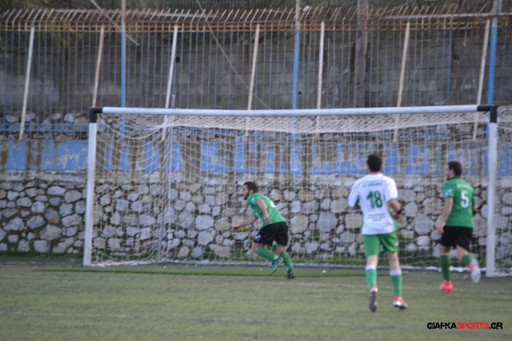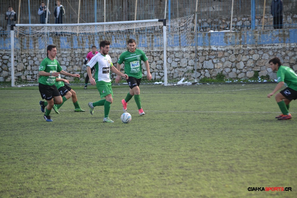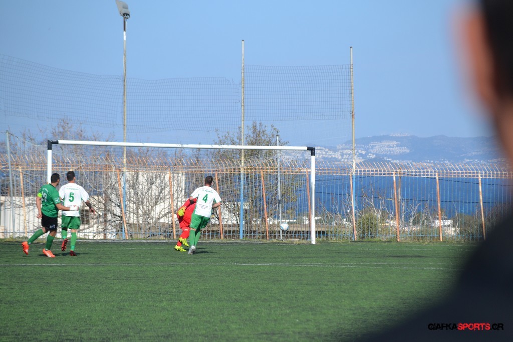 Το Βαθύ προσπάθησε απ’ τα πλάγια να χτυπήσει και το κατάφερε οκτώ λεπτά αργότερα όταν ο Μαλλιάς έκανε την επικίνδυνη σέντρα σουτ και με ένα υπέροχο σουτ έστειλε την μπάλα στην αριστερή γωνία του Χατζηβασίλη κάνοντας το 1-1 που ήταν και το αποτέλεσμα του πρώτου μέρους.