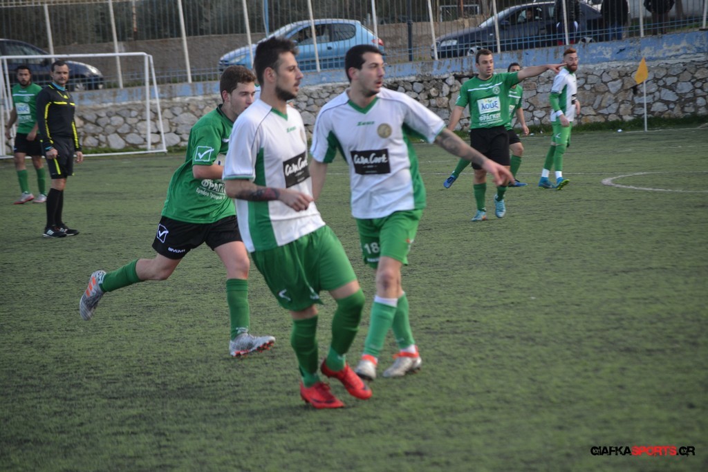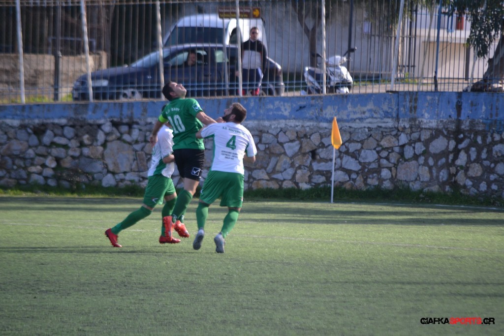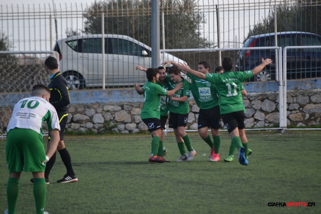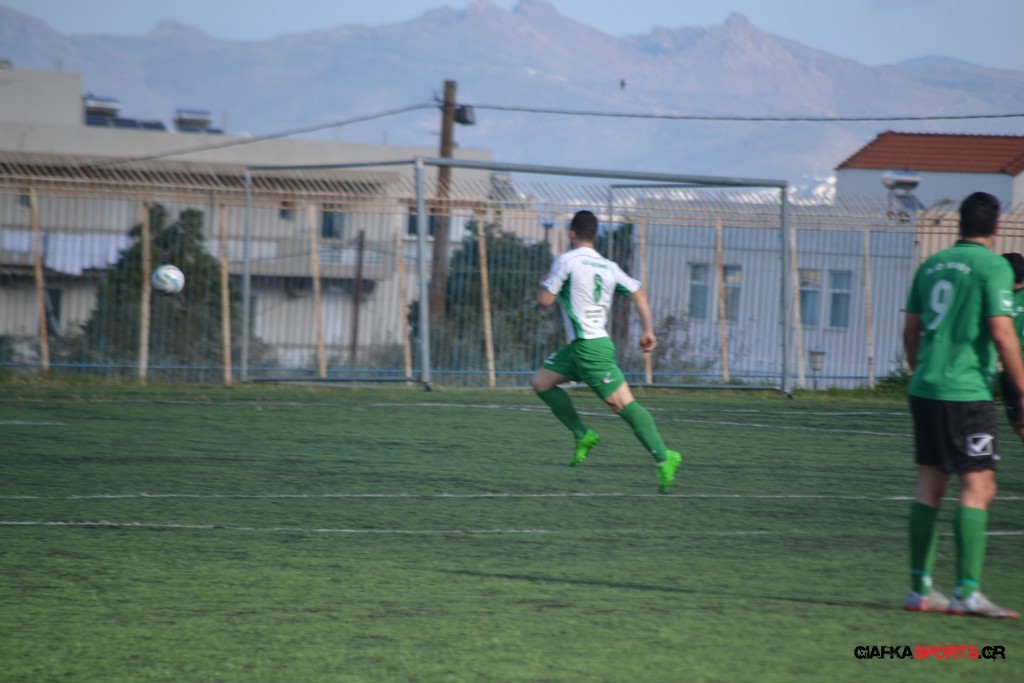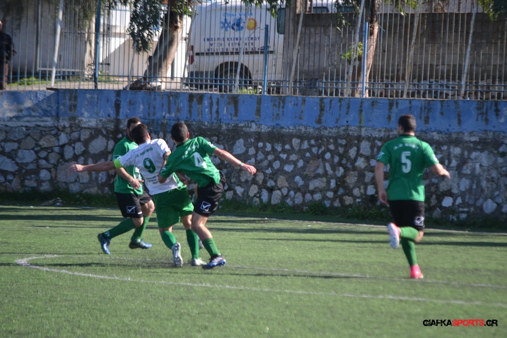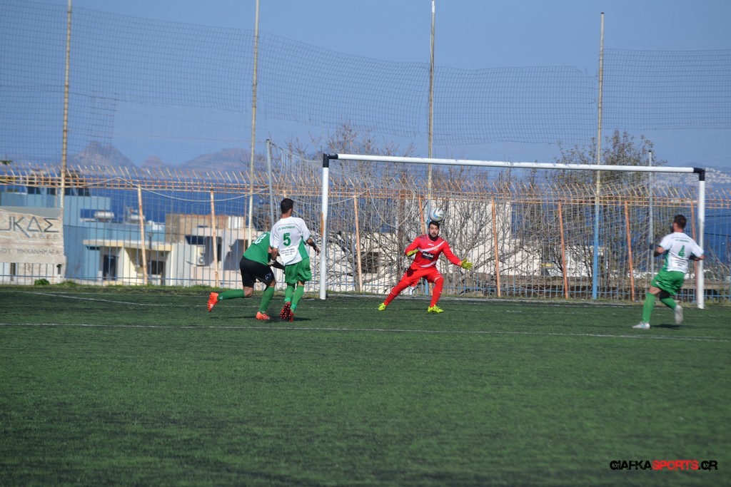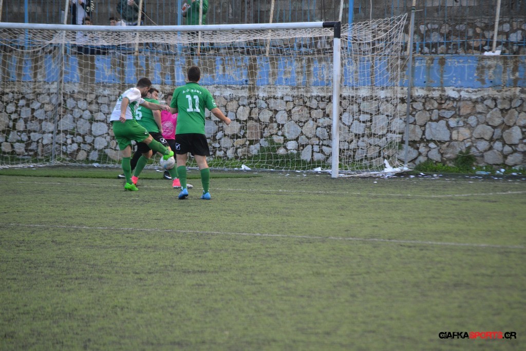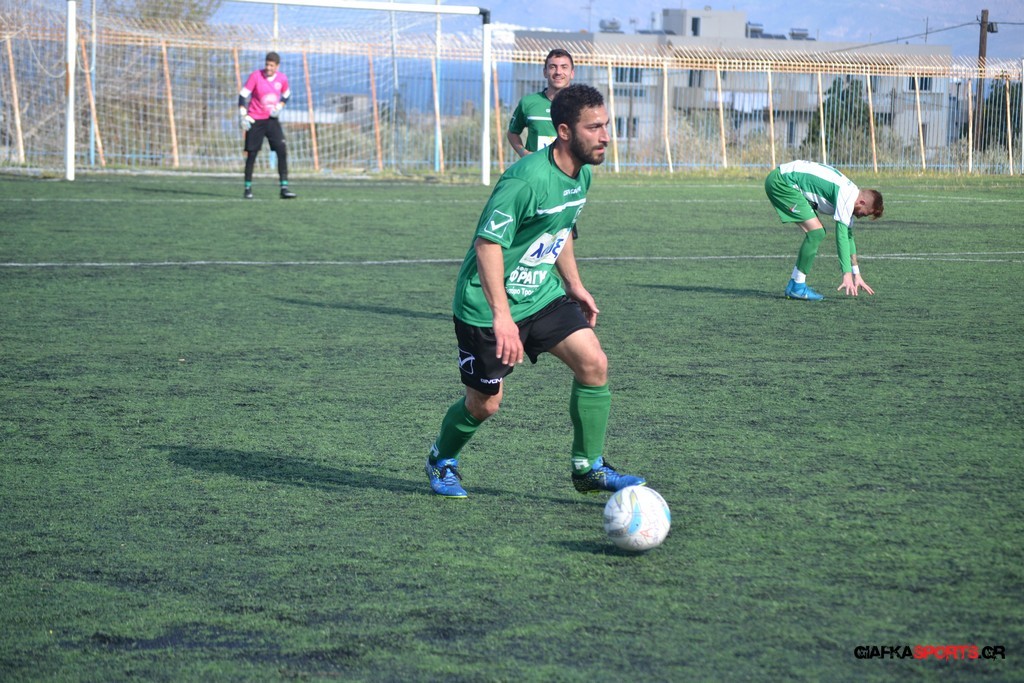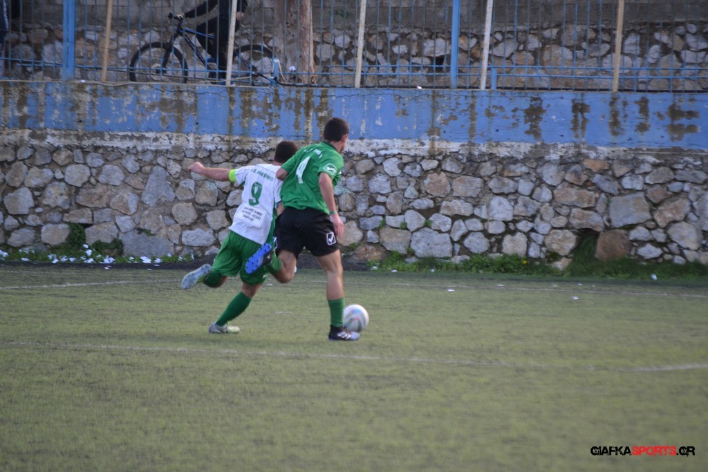 Το Βαθύ προσπάθησε απ’ τα πλάγια να χτυπήσει και το κατάφερε οκτώ λεπτά αργότερα όταν ο Μαλλιάς έκανε την επικίνδυνη σέντρα σουτ και με ένα υπέροχο σουτ έστειλε την μπάλα στην αριστερή γωνία του Χατζηβασίλη κάνοντας το 1-1 που ήταν και το αποτέλεσμα του πρώτου μέρους.