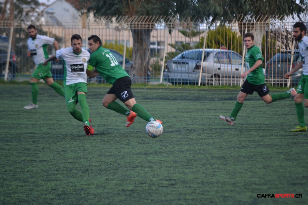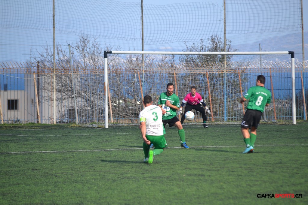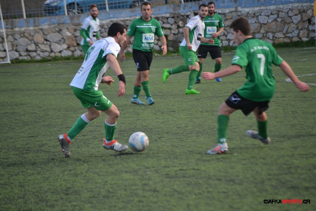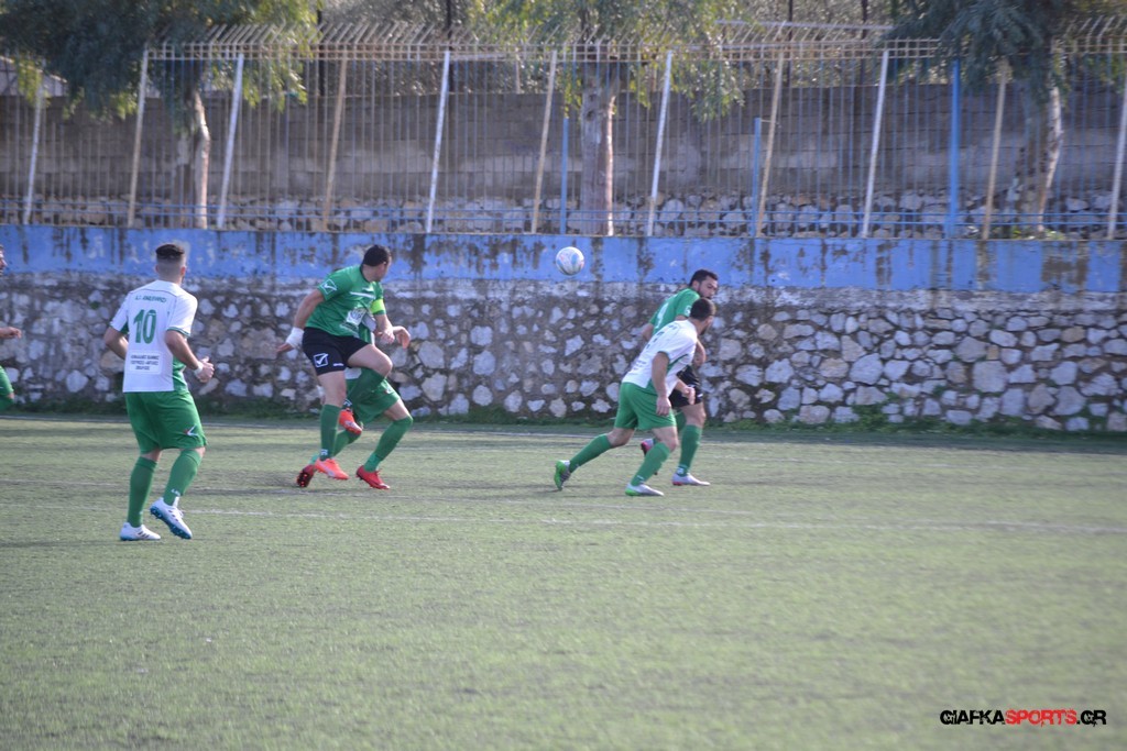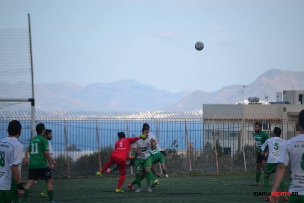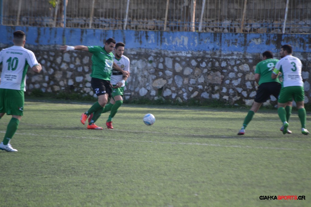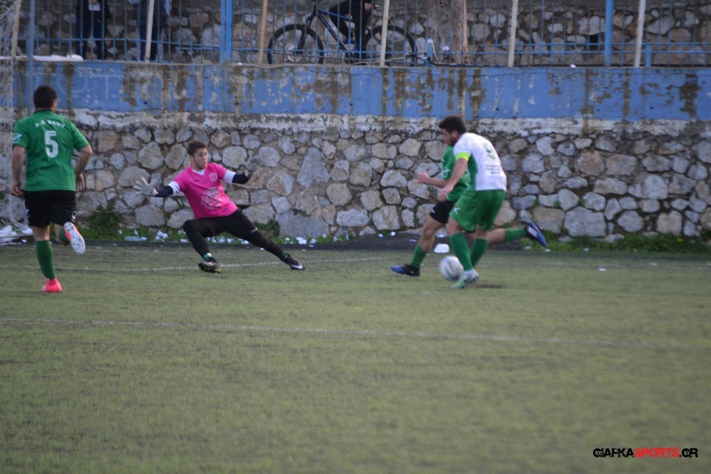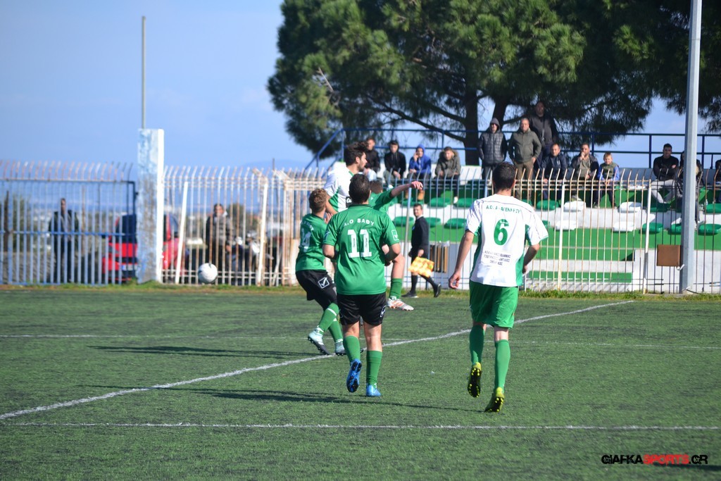 Το Βαθύ προσπάθησε απ’ τα πλάγια να χτυπήσει και το κατάφερε οκτώ λεπτά αργότερα όταν ο Μαλλιάς έκανε την επικίνδυνη σέντρα σουτ και με ένα υπέροχο σουτ έστειλε την μπάλα στην αριστερή γωνία του Χατζηβασίλη κάνοντας το 1-1 που ήταν και το αποτέλεσμα του πρώτου μέρους.