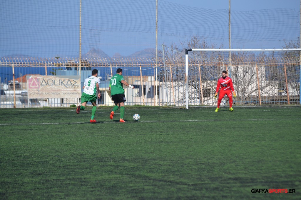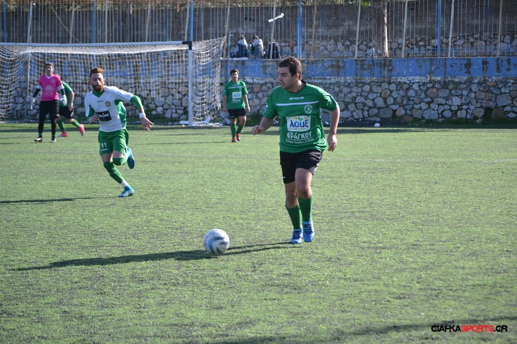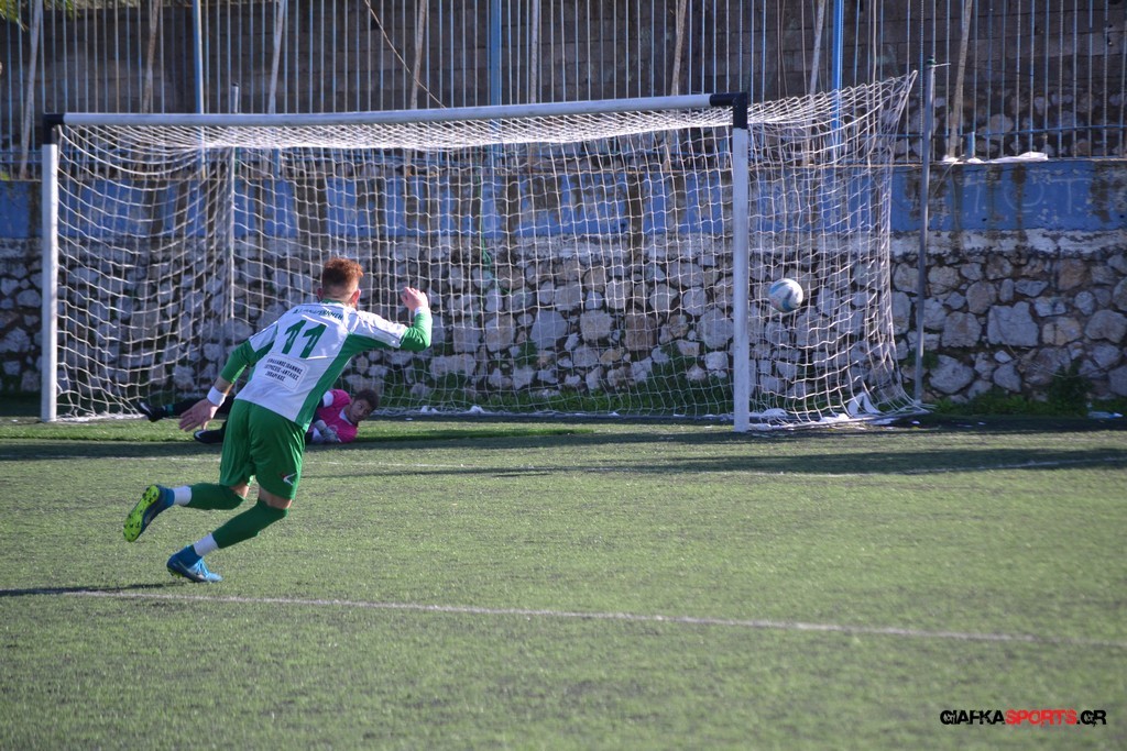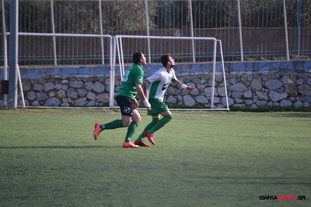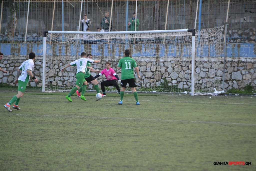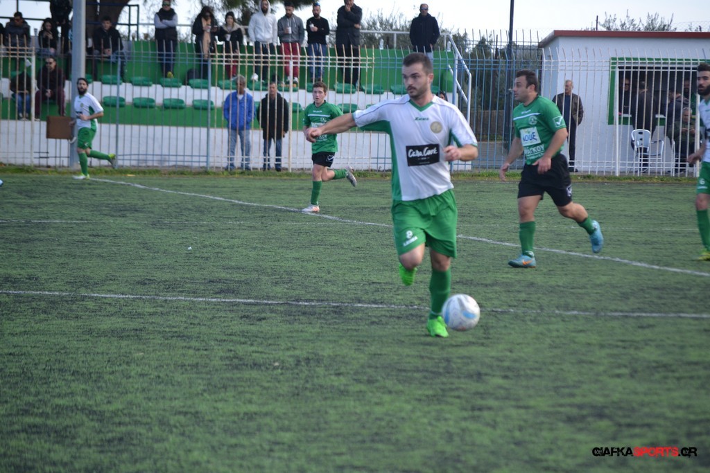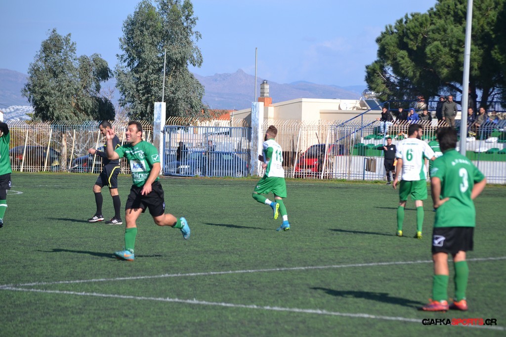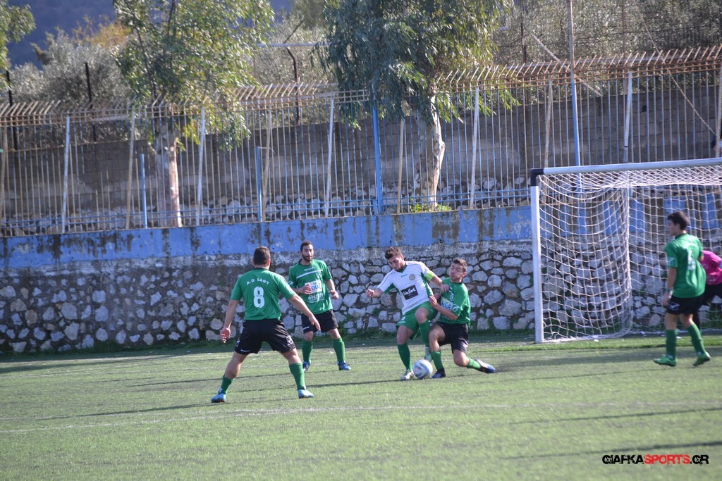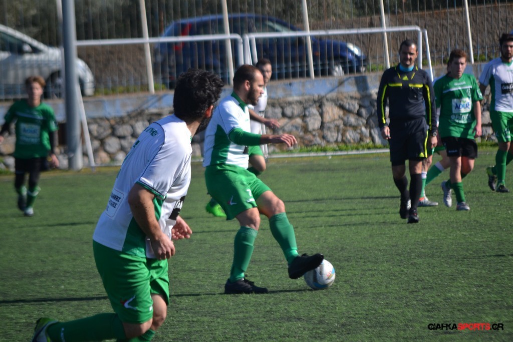 Το Βαθύ προσπάθησε απ’ τα πλάγια να χτυπήσει και το κατάφερε οκτώ λεπτά αργότερα όταν ο Μαλλιάς έκανε την επικίνδυνη σέντρα σουτ και με ένα υπέροχο σουτ έστειλε την μπάλα στην αριστερή γωνία του Χατζηβασίλη κάνοντας το 1-1 που ήταν και το αποτέλεσμα του πρώτου μέρους.