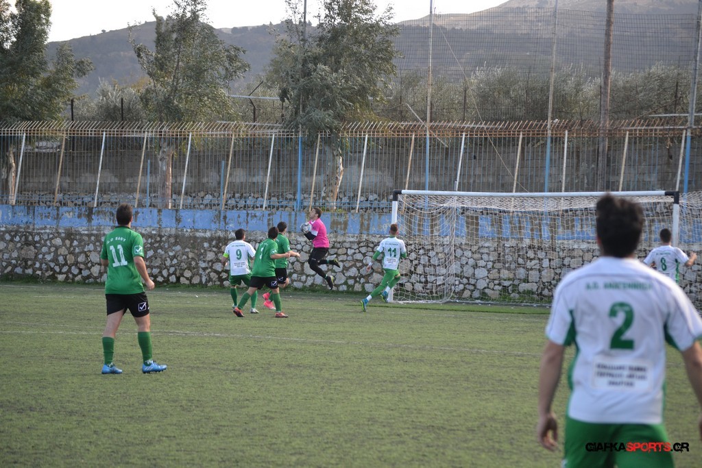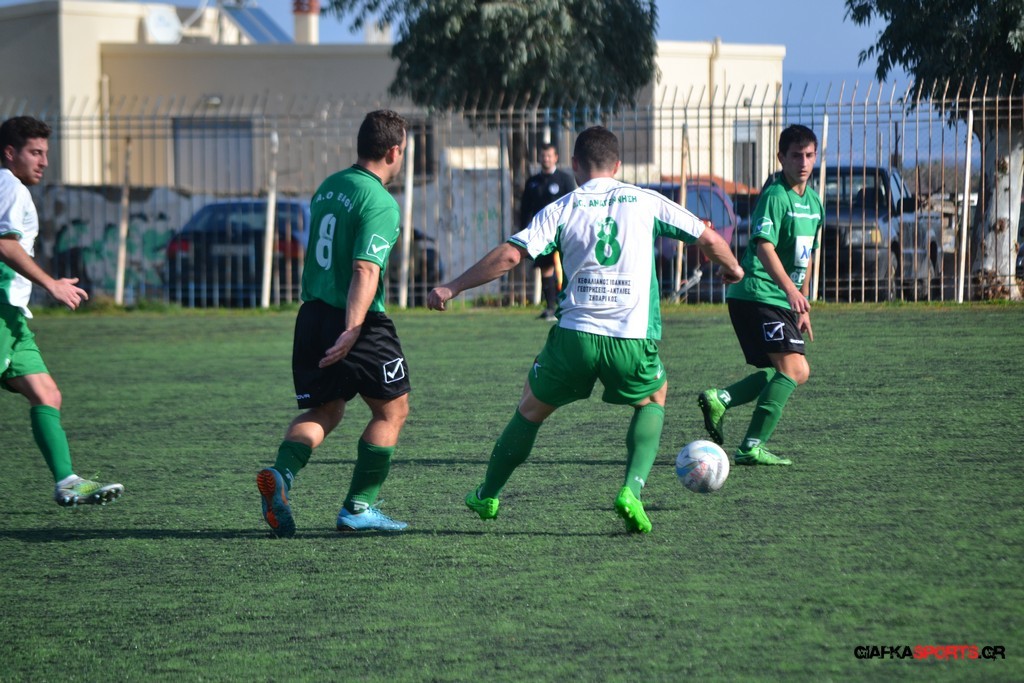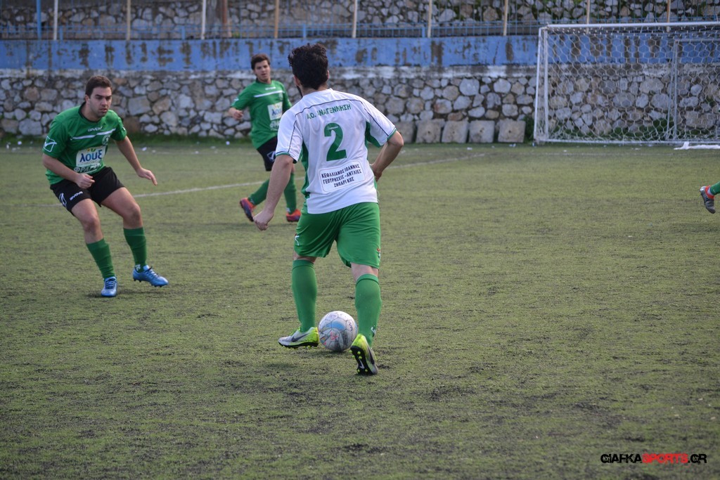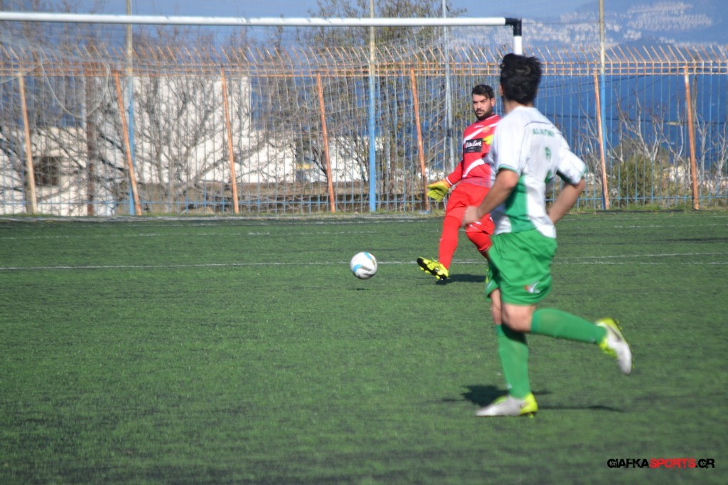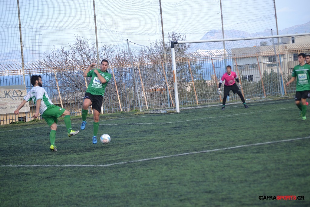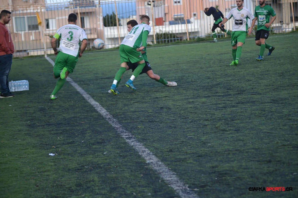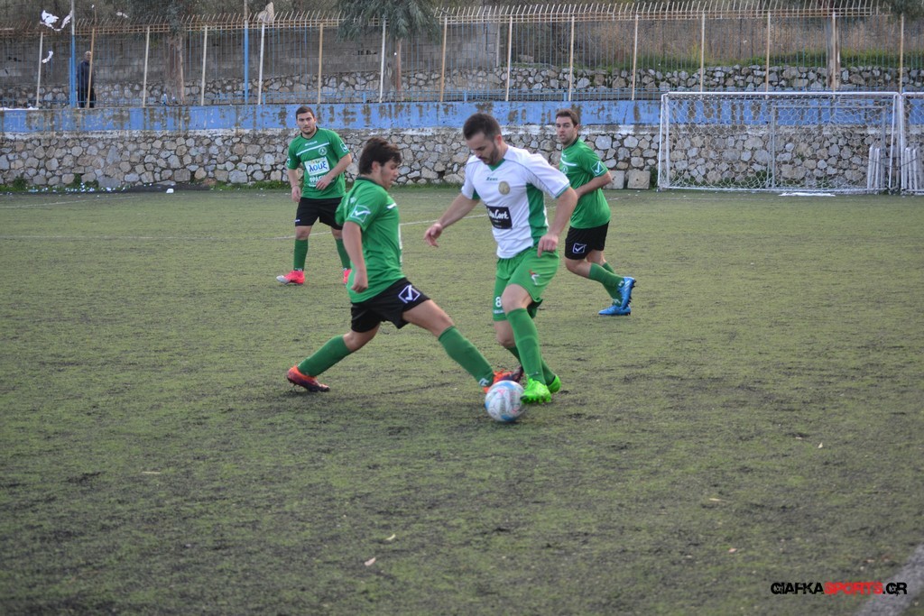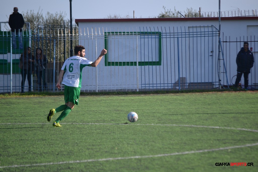 Το Βαθύ προσπάθησε απ’ τα πλάγια να χτυπήσει και το κατάφερε οκτώ λεπτά αργότερα όταν ο Μαλλιάς έκανε την επικίνδυνη σέντρα σουτ και με ένα υπέροχο σουτ έστειλε την μπάλα στην αριστερή γωνία του Χατζηβασίλη κάνοντας το 1-1 που ήταν και το αποτέλεσμα του πρώτου μέρους.