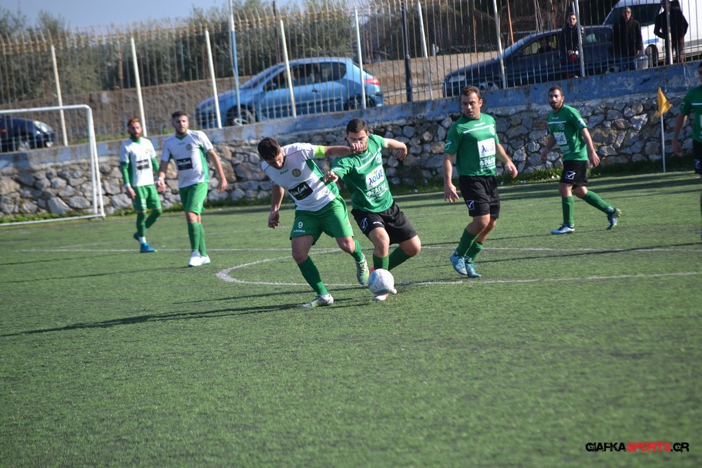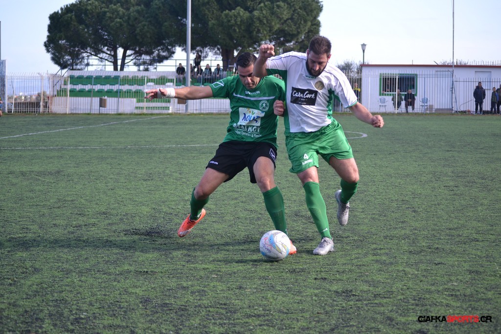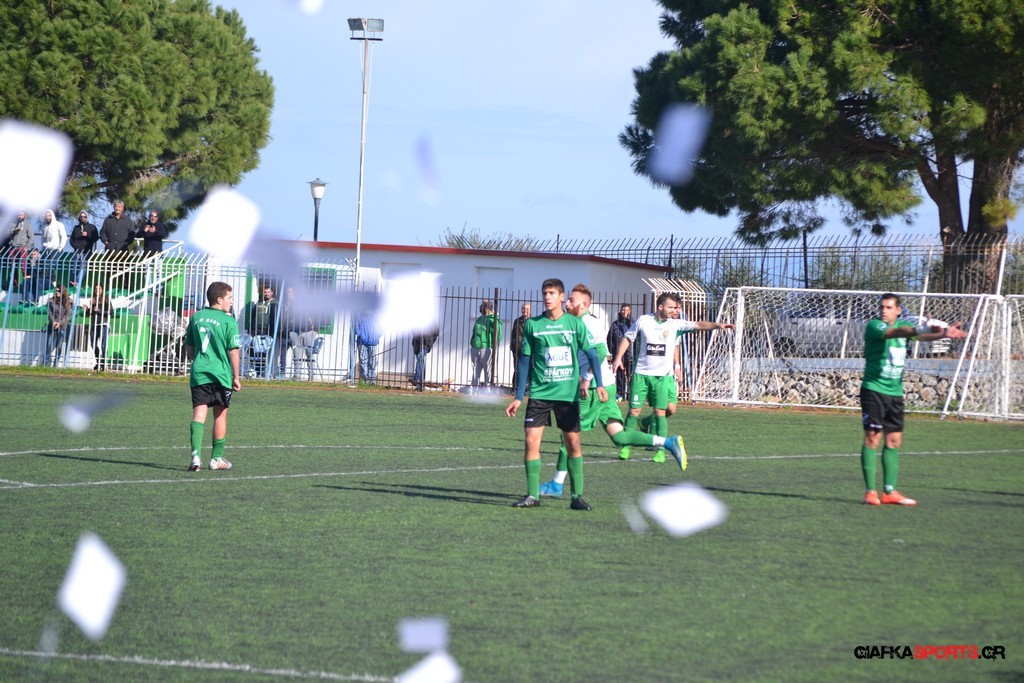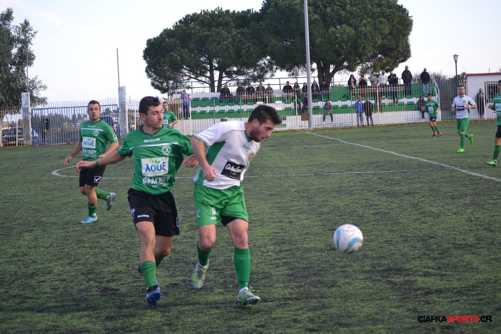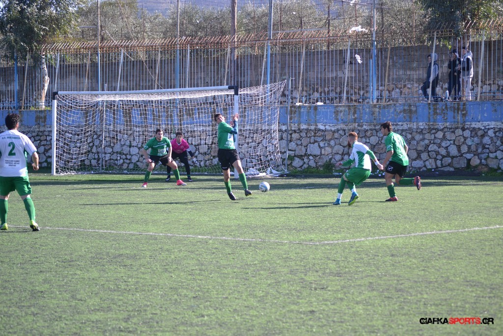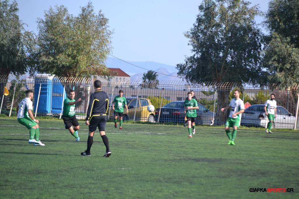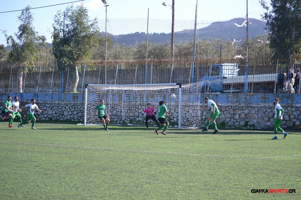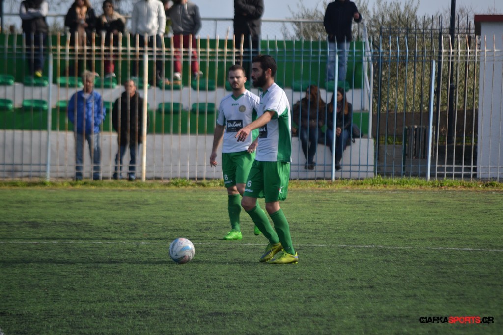 Οι γηπεδούχοι μπήκαν καλύτερα στο ματς και κατάφεραν στο 28’ να πάρουν προβάδισμα στο σκορ όταν μετά από ωραία συνεργασία ανάμεσα σε Κεφαλιανό και Τράκα ο τελευταίος με δυνατό σουτ έκανε το 1-0.