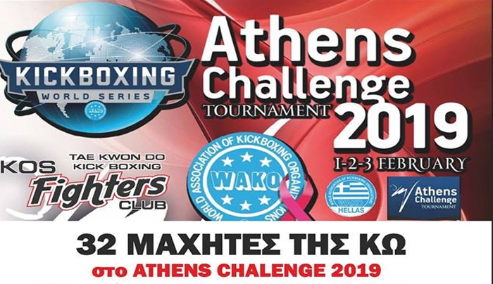 Για μια ακόμη χρονιά, ο Σύλλογος «Μαχητές της Κω», θα δώσει δυναμικό παρών στο δεύτερο μεγαλύτερο πρωτάθλημα Kick Boxing στην Ευρώπη, που είναι το Athens Challenge. Το 16ο Athens Challenge Tournament θα πραγματοποιηθεί στις 1-2-3 Φεβρουαρίου 2019, υπό την αιγίδα της Παγκόσμιας Ομοσπονδίας (W.A.K.O.) και της Πανελλήνιας Ομοσπονδίας Kick Boxing (ΠΟΚ), στο Ολυμπιακό ακίνητο της Πάλης στα Άνω Λιόσια.