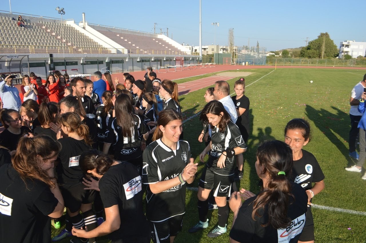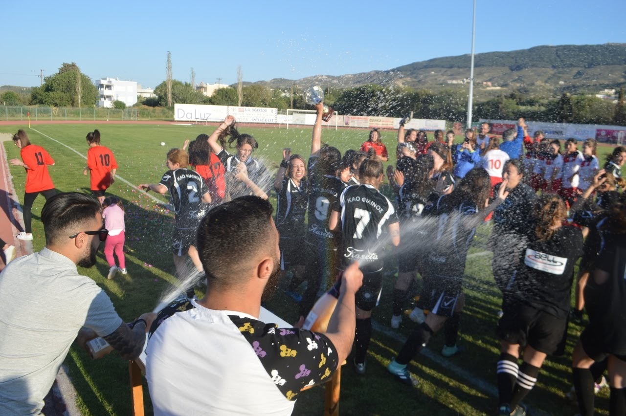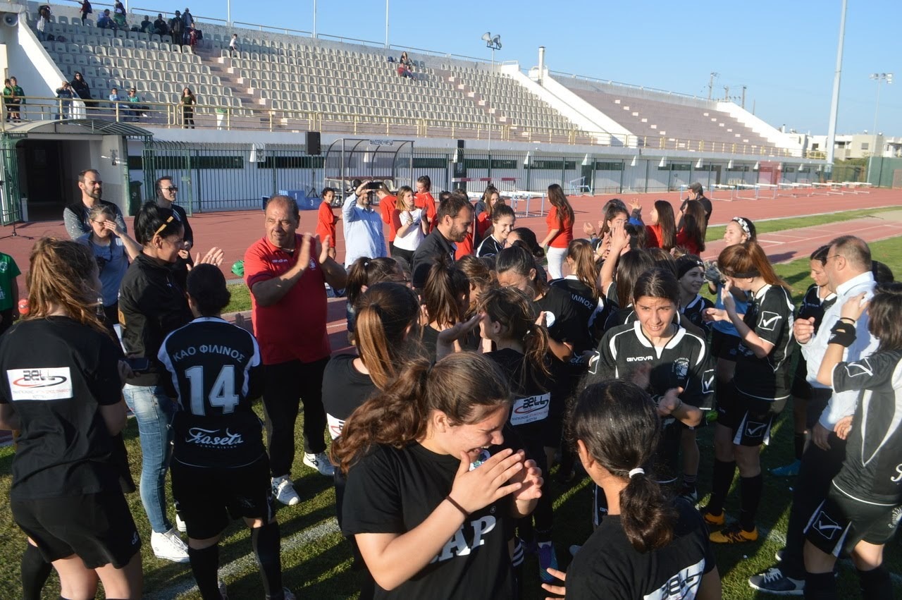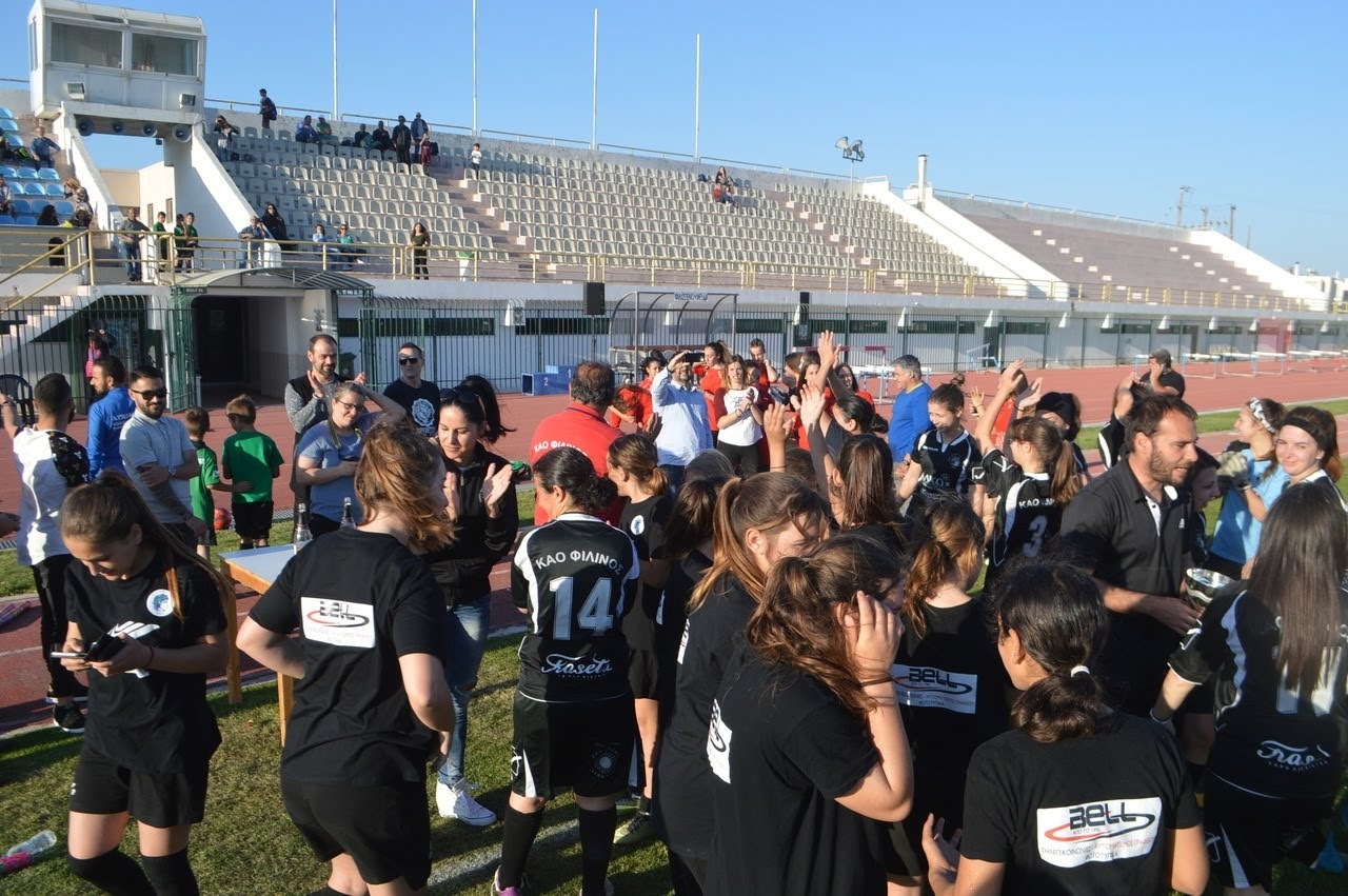 Εκεί εκεί στην Β’ Εθνική. Εκεί που τους αξίζει. Τα κορίτσια του Φιλίνος έκαναν σήμερα την φιέστα του τίτλου στην Γ’ Εθνική, πανηγυρίζοντας όλοι μαζί την άνοδο στην Β’ Εθνική. Η ομάδα του Γιώργου Φυτά κατάφερε με τον πιο “μάγκικο” τρόπο, με μεγάλο διπλό στην έδρα του Σταυρού Καλυθιών να κατακτήσει τον τίτλο.