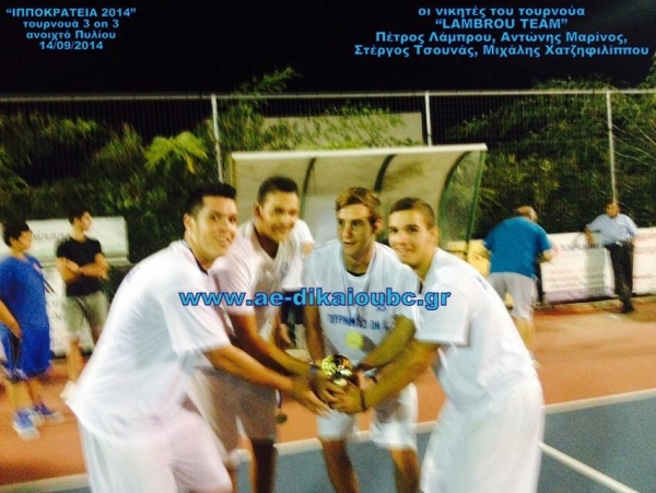 Η Α.Ε. Δικαίου σε συνεργασία με τον ΔΟΠΑΒΣ παρουσίασαν το 1ο 3on3 Ανδρών με μεγάλη επιτυχία και πολλές συμμετοχές (πάνω από 45 αγωνιζόμενοι)!!! Νικητές του τουρνουά ήταν οι Lambrou Team, ενώ ΝΙΚΗΤΉΣ