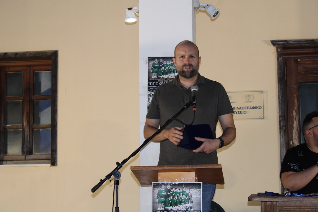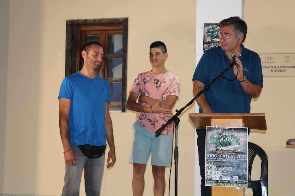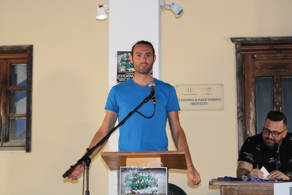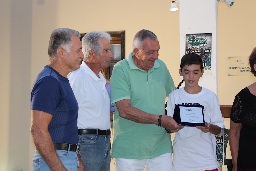 Ο Τότης Φυλακούρης παρέα με τον Σέβη Βλάχου τίμησαν την ομάδα του Α.Ο Πυλίου για την συνεχή του παρουσία στο πρωτάθλημα της Γ’ Εθνικής με τον πρόεδρο, Πέτρο Κεφαλιανό να παραλαμβάνει την τιμητική πλάκέτα. Για τις μεγάλες επιτυχίες τους βραβεύτηκαν ο Ναυτικός Όμιλος Κω (το βραβείο παρέλαβε ο έφορος ταχυπλόων σκαφών και πατέρας της εξαιρετικής Μαρίας Σακελλαροπούλου, Ολύμπιος) και το τμήμα της Άρσης Βαρών του Ανταγόρα (με τον Χρήστο Σπύρού να καλεί τον χρόνια Ανταγορίτη, Θέμο Νικολακάκη να πάρει το βραβείο) ενώ ξεχωριστή ήταν η βράβευση του πρωταθλητή ποδηλασίας, Μιχάλη Καλλερέ ο οποίος καταχειροκροτήθηκε τόσο αυτός όσο και οι γονείς του και ο προπονητής του για τα όσα έχουν πετύχει μαζί με τον Μιχάλη.