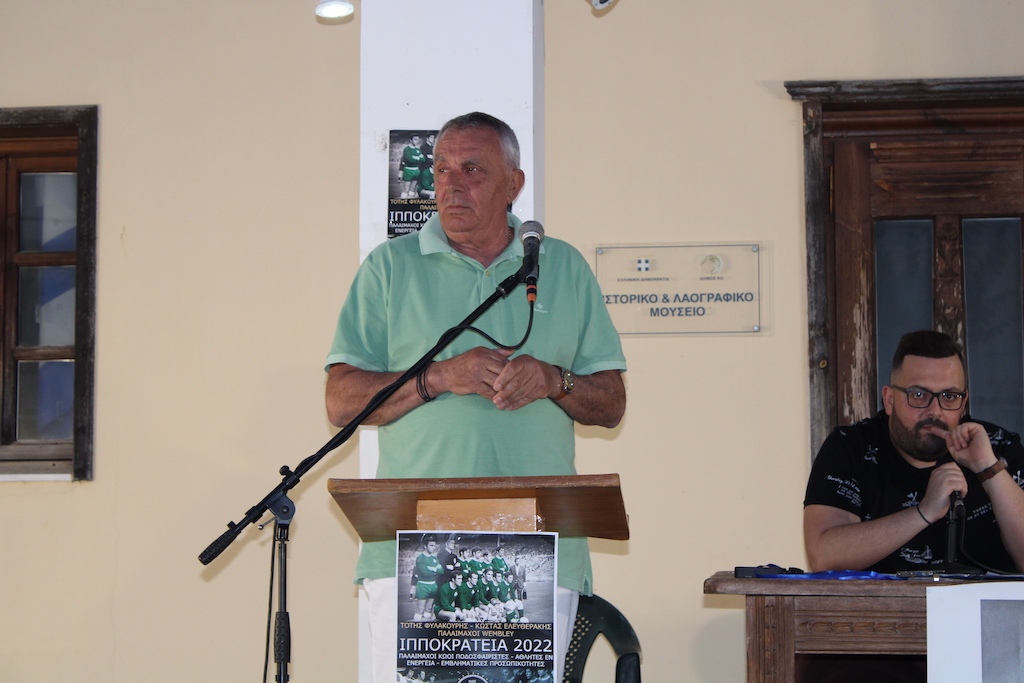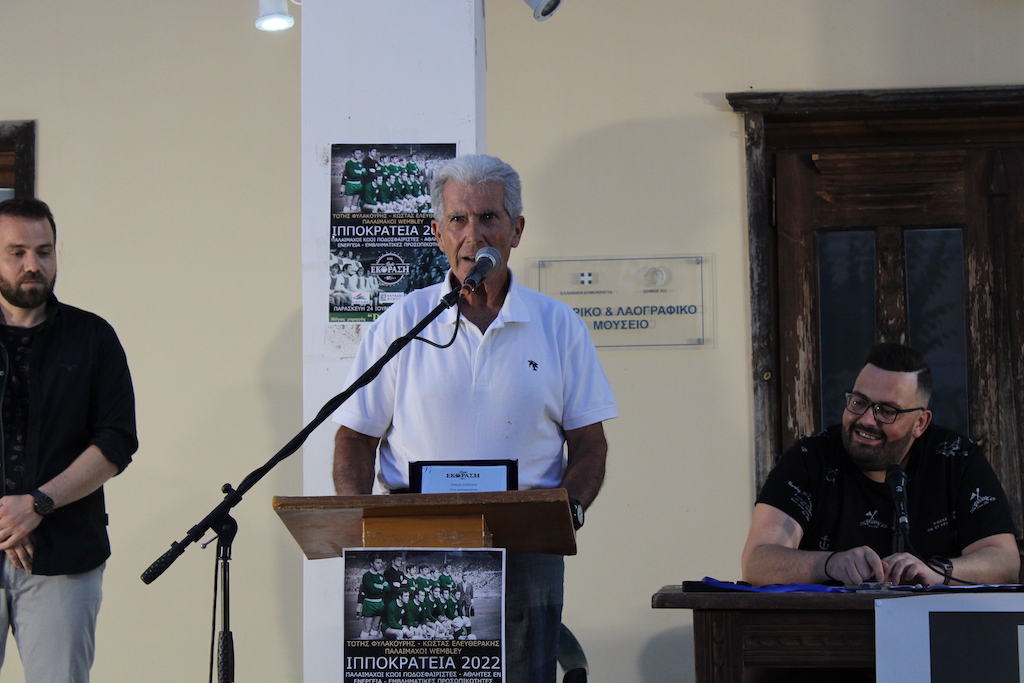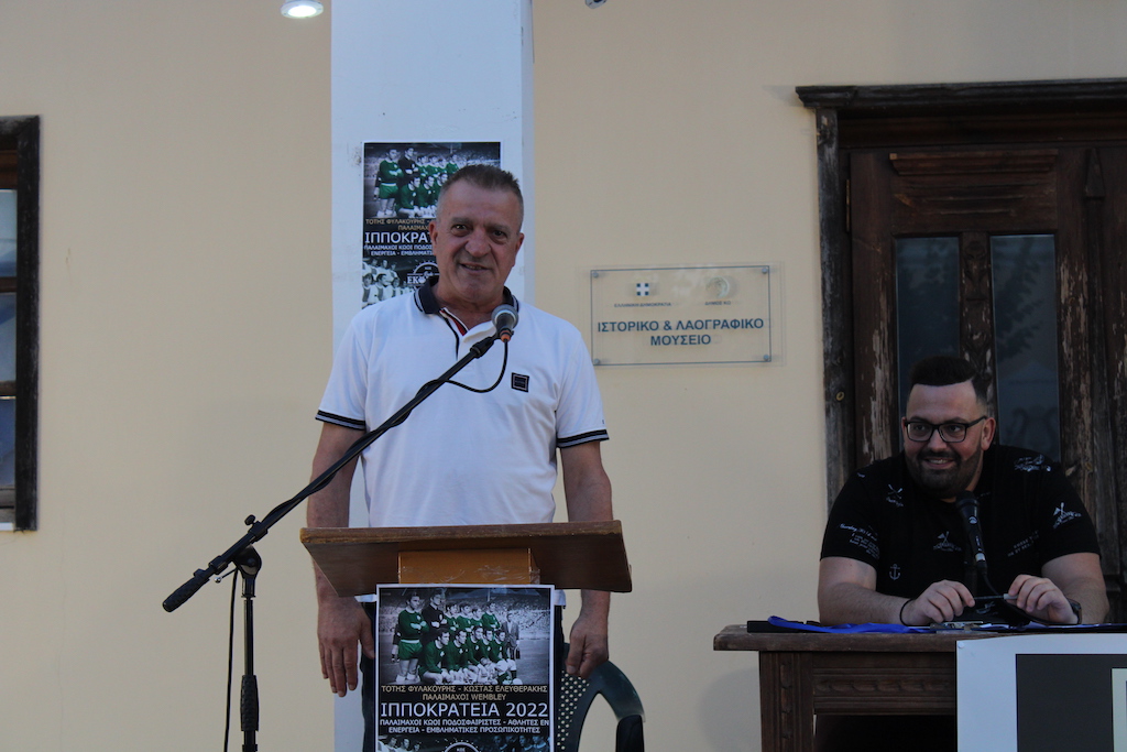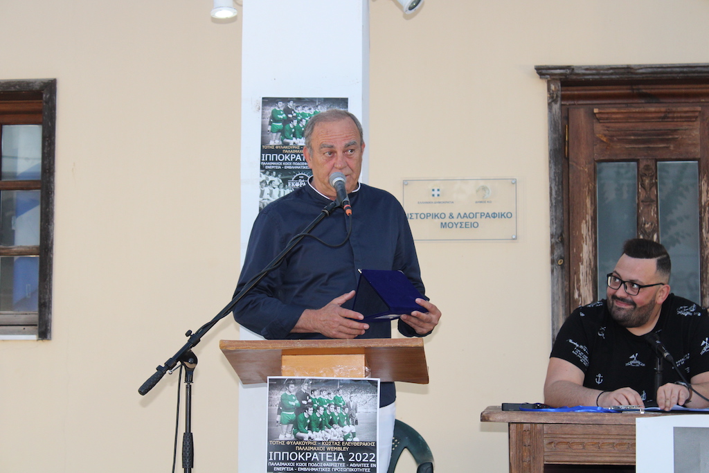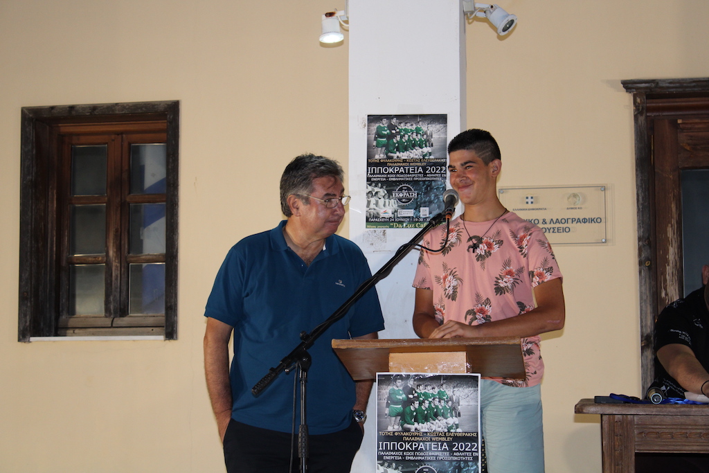 Ο Τότης Φυλακούρης παρέα με τον Σέβη Βλάχου τίμησαν την ομάδα του Α.Ο Πυλίου για την συνεχή του παρουσία στο πρωτάθλημα της Γ’ Εθνικής με τον πρόεδρο, Πέτρο Κεφαλιανό να παραλαμβάνει την τιμητική πλάκέτα. Για τις μεγάλες επιτυχίες τους βραβεύτηκαν ο Ναυτικός Όμιλος Κω (το βραβείο παρέλαβε ο έφορος ταχυπλόων σκαφών και πατέρας της εξαιρετικής Μαρίας Σακελλαροπούλου, Ολύμπιος) και το τμήμα της Άρσης Βαρών του Ανταγόρα (με τον Χρήστο Σπύρού να καλεί τον χρόνια Ανταγορίτη, Θέμο Νικολακάκη να πάρει το βραβείο) ενώ ξεχωριστή ήταν η βράβευση του πρωταθλητή ποδηλασίας, Μιχάλη Καλλερέ ο οποίος καταχειροκροτήθηκε τόσο αυτός όσο και οι γονείς του και ο προπονητής του για τα όσα έχουν πετύχει μαζί με τον Μιχάλη.