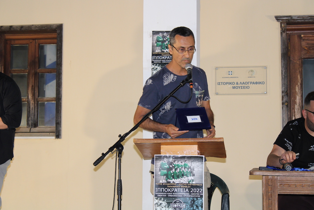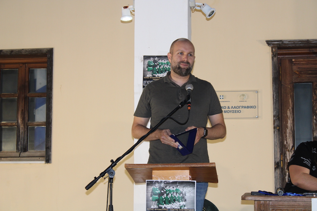 Βραβείο παρέλαβε και ο Γιάννης Βαλαώρας που με την Λάρισα έγραψε ιστορία παίρνοντας τον τίτλο στην Α’ Εθνική και πάνω από τριάντα χρόνια μένει μόνιμα στο νησί μας. Παράλληλα τιμήθηκαν και οι παλαίμαχοι Κώοι ποδοσφαιριστές, Αντώνης Πίττας, Λευτέρης Πουλιού, Αλέξης Καμπούρογλου και Κώστας Ανδρουλλής όπως και ο Κώος προπονητής, Σωτήρης Συλαϊδόπουλος που κάνει πλέον την δική του ξεχωριστή πορεία στον χώρο με την κόρη του μάλιστα να παραλαμβάνει το βραβείο απ’ τον αντιδήμαρχο Νισύρου, κ. Χασαπλαδάκη.