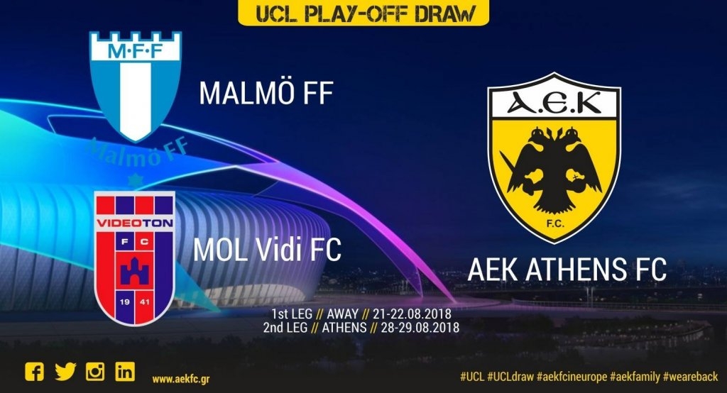 Τελευταίο βγήκε στην κλήρωση των πλέι οφ του Τσάμπιονς Λιγκ το ζευγάρι Σέλτικ – ΑΕΚ. Και η αλήθεια είναι πως τώρα… χαμογέλασε στην Ενωση αυτή η κλήρωση, καθώς εφόσον καταφέρει η Ενωση να αποκλείσει την πρωταθλήτρια Σκωτίας θα αντιμετωπίσει τον νικητή του ζευγαριού Μάλμε – Βιντεότον. Τα ματς θα διεξαχθούν 21 ή 22 και 28 ή 29 Αυγούστου και θα είναι εκτός έδρας ο πρώτος αγώνας. To πρώτο ματς Μάλμε (πρωταθλήτρια Σουηδίας) – Βιντεότον (πρωταθλήτρια Ουγγαρίας) θα διεξαχθεί αύριο Τρίτη (7/8).