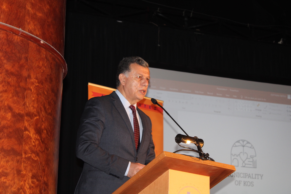 Ακολούθησαν οι χαιρετισμοί απ’ τον Δήμαρχο Κω, Θεοδόση Νικηταρά, απ’ τον πρόεδρο της ΕΟΚ, Βαγγέλης Λιόλιο που έδωσε το παρών στην εκδήλωση, απ’ την αντιδήμαρχο Πολιτισμού και Τουρισμού, Σέβη Βλάχου, απ’ τον πρόεδρο του ΔΟΠΑΒΣ, Παναγιώτη Χατζηχριστοφή και απ’ τον πρόεδρο του Εσπέρου, Δημήτρη Δρόσο.