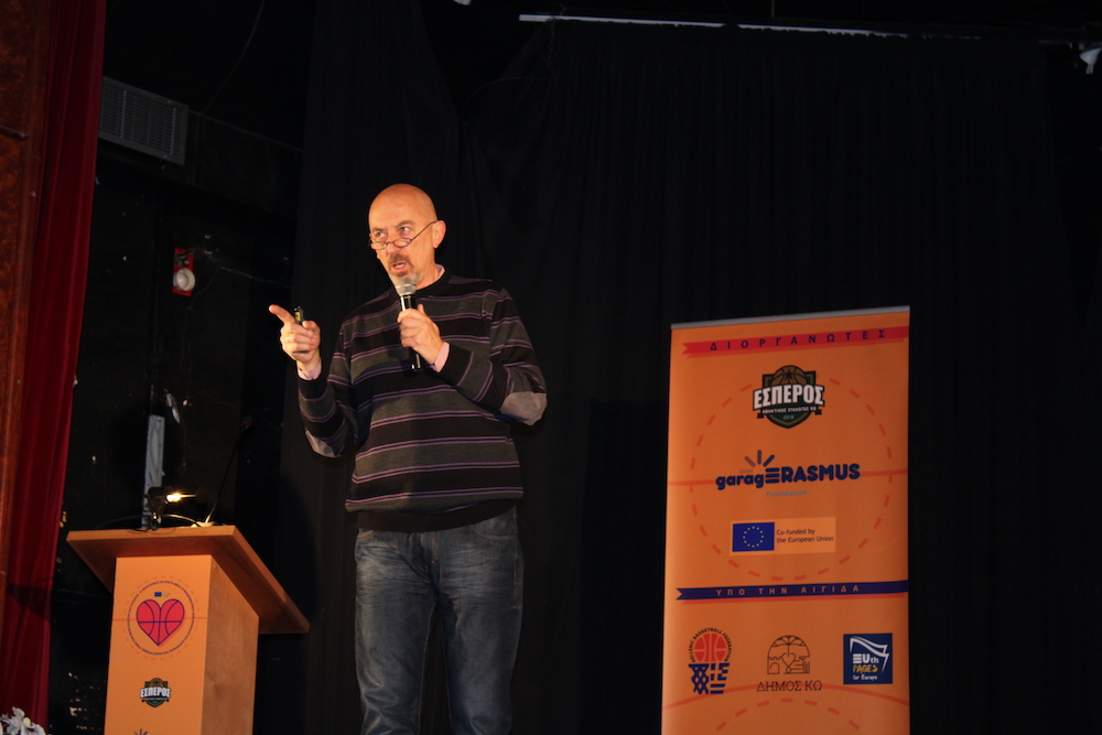 Στην συνέχεια μίλησαν κατά σειρά ο κ. Ελευθεριάδης Γιάννης, Καθηγητής Φυσικής Αγωγής και προπονητής καλαθοσφαίρισης του Εσπέρου ενώ το δικό της μήνυμα έστειλε μέσα βίντεο η γενική διευθύντρια εκπαίδευσης, Νεολαίας, Αθλητισμού και Πολιτισμού της Ευρωπαϊκής Επιτροπής. κυρία Θέμις Χριστοφίδου.
