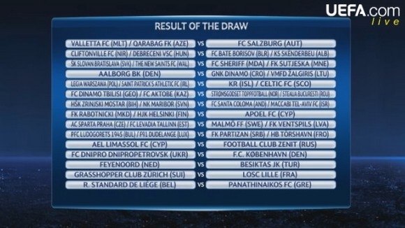 Από την άλλη, ο ΑΠΟΕΛ θα αντιμετωπίσει το νικητή του ζευγαριού Ραμποτνίτσκι/Ελσίνκι, ενώ η ΑΕΛ Λεμεσού έχει σαφώς πιο δύσκολο έργο απ’ όλους που θα κοντραριστεί με την Ζενίτ.