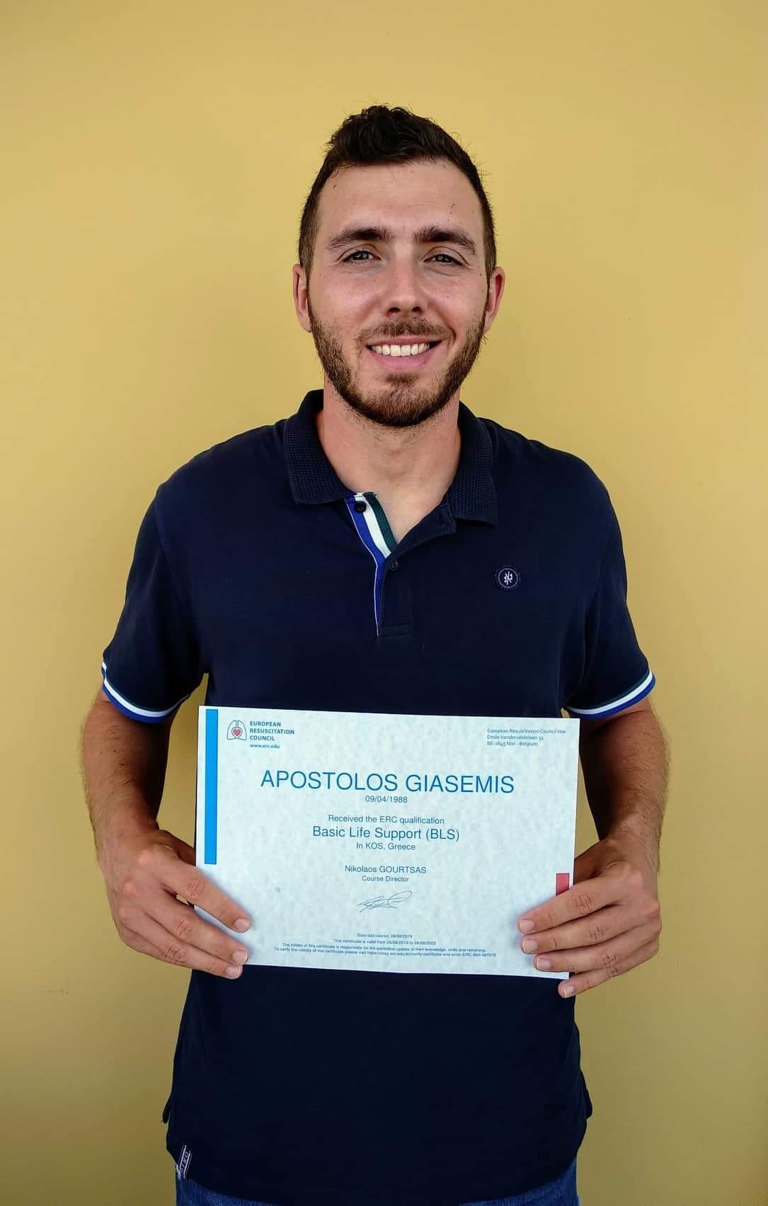 Ο προπονητής της ομάδας μας Απόστολος Γιασεμής παρακολούθησε με επιτυχία το Πιστοποιημένο Σεμινάριο Βασικής Υποστήριξης Ζωής από την Ελληνική Ομάδα Διάσωσης Κω. Η πιστοποίηση του παρέχεται από το Ευρωπαϊκό Συμβούλιο Αναζωογόνησης και είχε ως θεματικές ενότητες : Καρδιοπνευμονική Αναζωογόνηση (ΚΑΡΠΑ-BLS) – Χρήση αυτόματου εξωτερικού απινιδωτή (AED) – Αντιμετώπιση πνιγμονής – Πλάγια Θέση Ασφαλείας.
