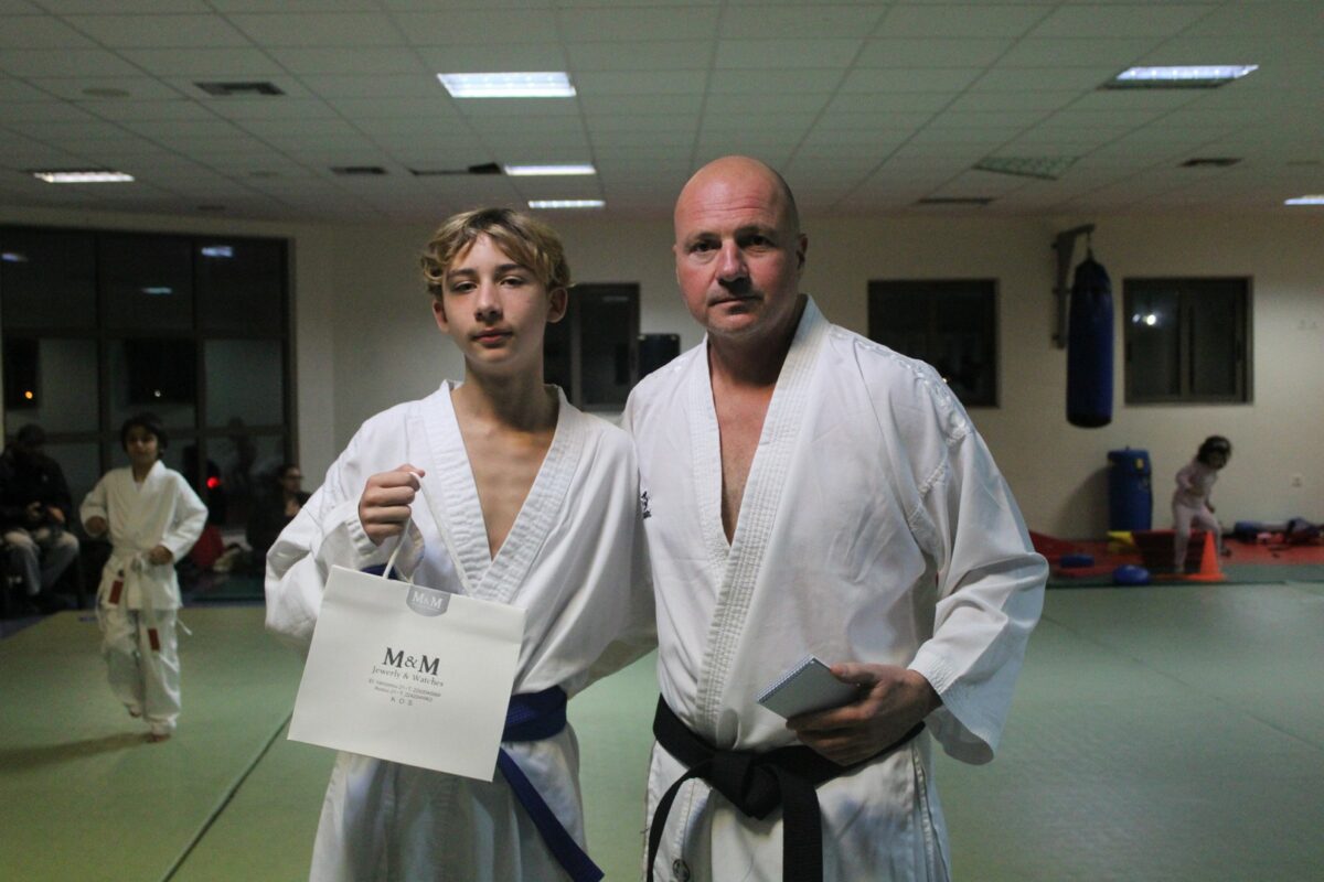 Ο προπονητής της σχολής, Απόστολος Παπανικολάου ευχαρίστησε τους γονείς και τα παιδιά για την στήριξη τους και για την προσήλωση που έχουν προς τον σύλλογο ενώ ευχαρίστησε θερμά τον Σταμάτη Καμπουράκη για την διαχρονική στήριξη όπως και την παγκόσμια πρωταθλήτρια στα ΚΑΤΑ Αντωνία Μωυσίδου που βρίσκεται αυτές τις μέρες στο νησί μας για σεμινάρια και εξετάσεις ζωνών.