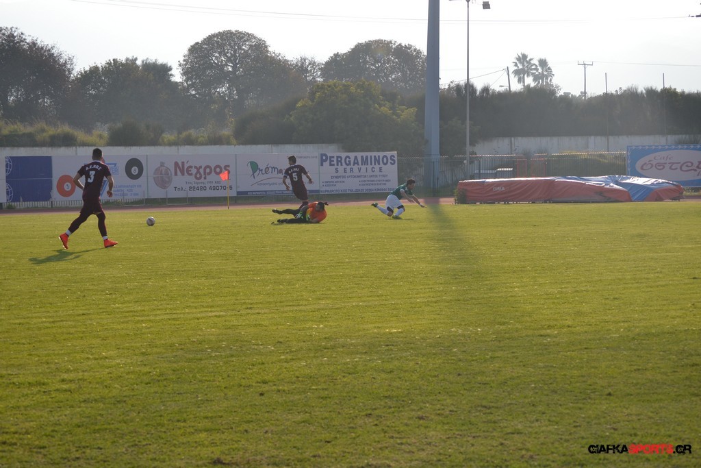 15′ Ο Ζερβός Γ. εκτέλεσε το φάουλ από δεξιά, ο Σκευοφύλαξ πήρε την κεφαλιά με την μπάλα να κοντράρει στους αμυντικούς και να περνά λίγο πάνω απ’ την εστία του Γκούτογλου.