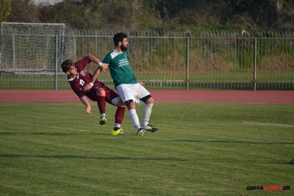25′ Ωραία κάθετη πάσα στον Κρεμύδα, ο Γκούτογλου βγήκε γρήγορα απ’ την εστία του και απομάκρυνε με το πόδια πριν γίνει απειλητικός ο Ζερβός Γ.