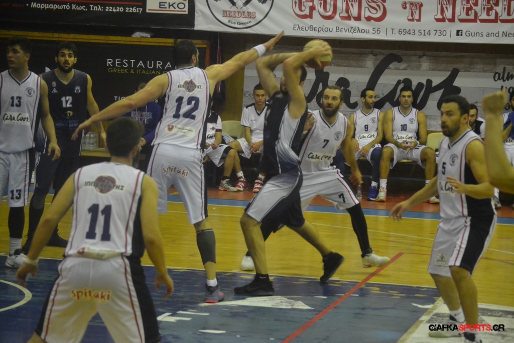 Ο Ιπποκράτης Κω με το καλημέρα του β’ ημιχρόνου άλλαξε άρδην την εικόνα του, δείχνοντας αρκετά βελτιωμένος σε όλους τους τομείς και κυρίως από την άμυνα του. Η ομάδα του Μιχάλη Καπλανίδη ξεκίνησε με σερί 10-3 και προηγήθηκε με 40-37 (24’), ενώ τα καλύτερα έγιναν στη συνέχεια. Το 43-39 (26’) έγινε 49-40, με τους γηπεδούχους να περνούν «χειροπέδες» στους αντιπάλους τους και έτσι η διαφορά έφτασε και σε διψήφιο αριθμό με τη συμπλήρωση της τρίτης περιόδου (54-43). Οι Κώοι πίεσαν στην άμυνα, είχαν σαφώς καλύτερες λύσεις στην επίθεση και είχαν τον απόλυτο έλεγχο του αγώνα, κάνοντας επιμέρους σκορ 24-9!