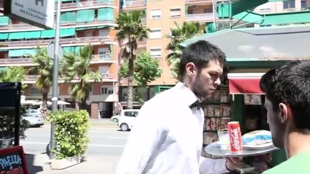 Ο πρώτος υποδύεται έναν σερβιτόρο, ενώ ο δεύτερος κάθισε πίσω από το τιμόνι, ενός ταξί.