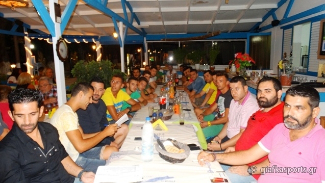 Το παρών έδωσαν σχεδόν όλοι οι ποδοσφαιριστές (απουσίαζαν κάποιοι δικαιολογημένα λόγω επαγγελματικών υποχρεώσεων) με το νέο πρόεδρο Μιχάλη Παμπρή να τους καλωσορίζει και επίσημα στην ομάδα και να τους εύχεται καλή ποδοσφαιρική χρονιά χωρίς τραυματισμούς. Ο πρόεδρος τους ζήτησε κυρίως να δείξουν σωστή συμπεριφορά απέναντι σε όλους και να έχουν υπομονή έτσι ώστε να μπορέσει η ομάδα να βρει τον δρόμο της ενώ στην συνέχεια παρουσίασε πέρα απ’ τα μέλη του Δ.Σ τον προπονητή της ομάδας Σάκη Στεφαδούρο, τον βοηθό του Γιώργο Γούλα και τον τεχνικό διευθυντή Μιχάλη Παπαγιαννόπουλο ενώ δεν παρέλειψε να ευχαριστήσει και τον Λάκη Πλατέλλα για το τραπέζι προς την ομάδα.
