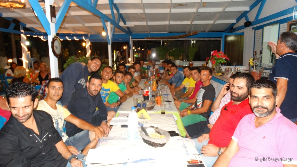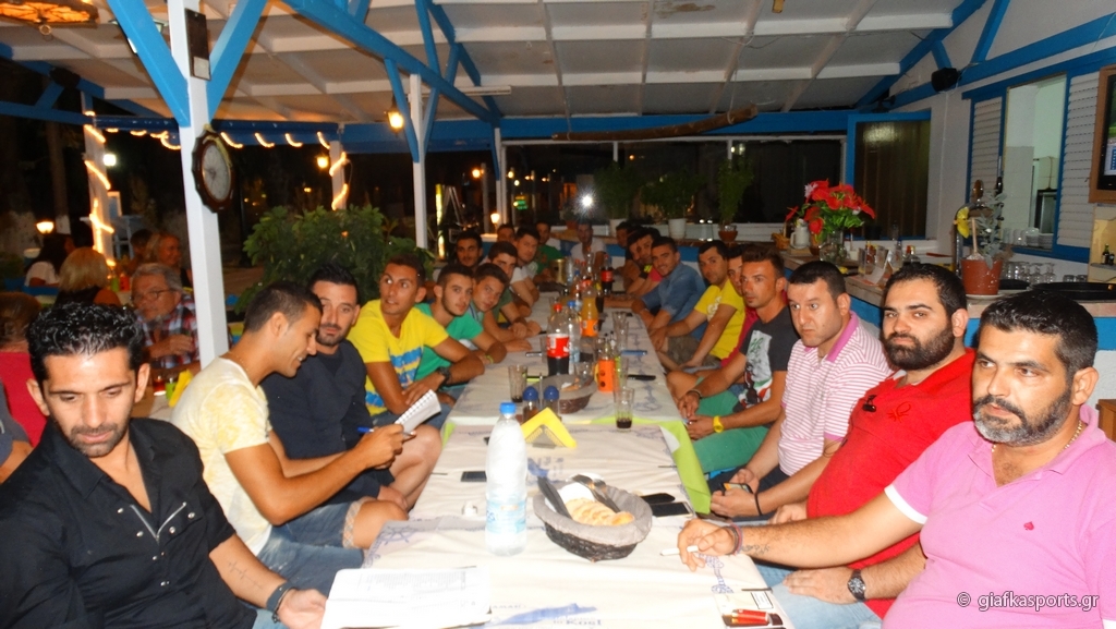 Το παρών έδωσαν σχεδόν όλοι οι ποδοσφαιριστές (απουσίαζαν κάποιοι δικαιολογημένα λόγω επαγγελματικών υποχρεώσεων) με το νέο πρόεδρο Μιχάλη Παμπρή να τους καλωσορίζει και επίσημα στην ομάδα και να τους εύχεται καλή ποδοσφαιρική χρονιά χωρίς τραυματισμούς. Ο πρόεδρος τους ζήτησε κυρίως να δείξουν σωστή συμπεριφορά απέναντι σε όλους και να έχουν υπομονή έτσι ώστε να μπορέσει η ομάδα να βρει τον δρόμο της ενώ στην συνέχεια παρουσίασε πέρα απ’ τα μέλη του Δ.Σ τον προπονητή της ομάδας Σάκη Στεφαδούρο, τον βοηθό του Γιώργο Γούλα και τον τεχνικό διευθυντή Μιχάλη Παπαγιαννόπουλο ενώ δεν παρέλειψε να ευχαριστήσει και τον Λάκη Πλατέλλα για το τραπέζι προς την ομάδα.
