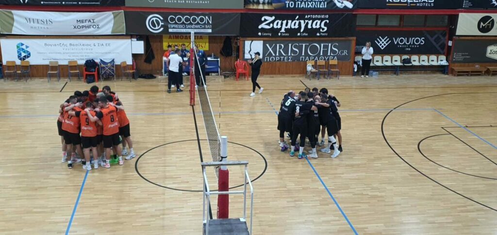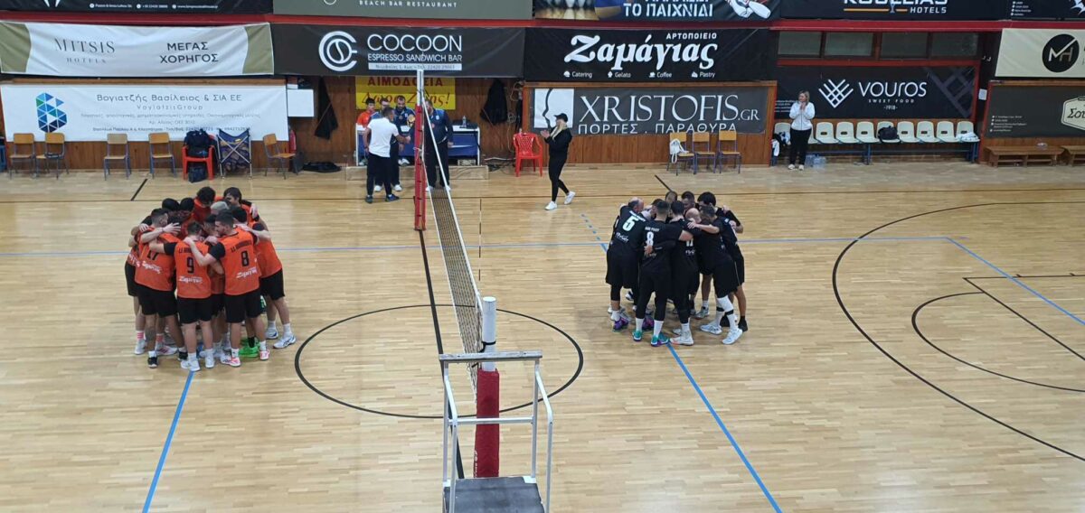 Οι δύο βασικοί διεκδικητές του τίτλου τέθηκαν αντιμέτωποι στο νησί του Ιπποκράτη, με την ομάδα του Αλκιβιάδη Χατζηνικολάου να πανηγυρίζει τη σπουδαία νίκη. Στο 1ο σετ, ο Α.Ο. Αθλοπαιδιών ήταν ψύχραιμος στα καθοριστικά σημεία και το πήρε με 25-22 σε 30 λεπτά.