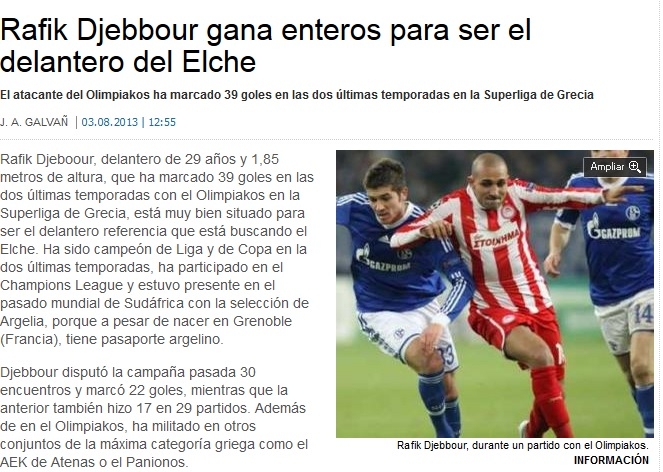 Όπως αναφέρουν αρκετά ισπανικά δημοσιεύματα, η ομάδα που φέτος ανέβηκε στην Primera Division θέλει να εντάξει τον άσο του Ολυμπιακού στο δυναμικό της, καθώς τον θεωρεί ιδανικό στην προσπάθειά της για θετική παρουσία στη μεγάλη κατηγορία.