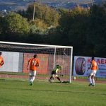 68′ Δυνατό σουτ του Πέτσα, μπλόκαρε στην αριστερή του γωνία ο Χαλκίδης.