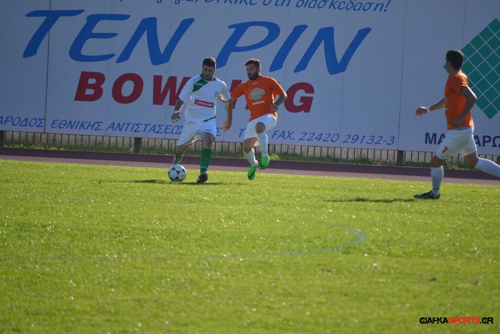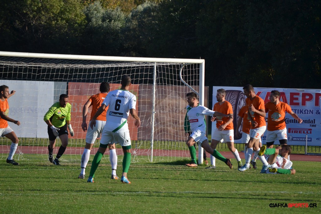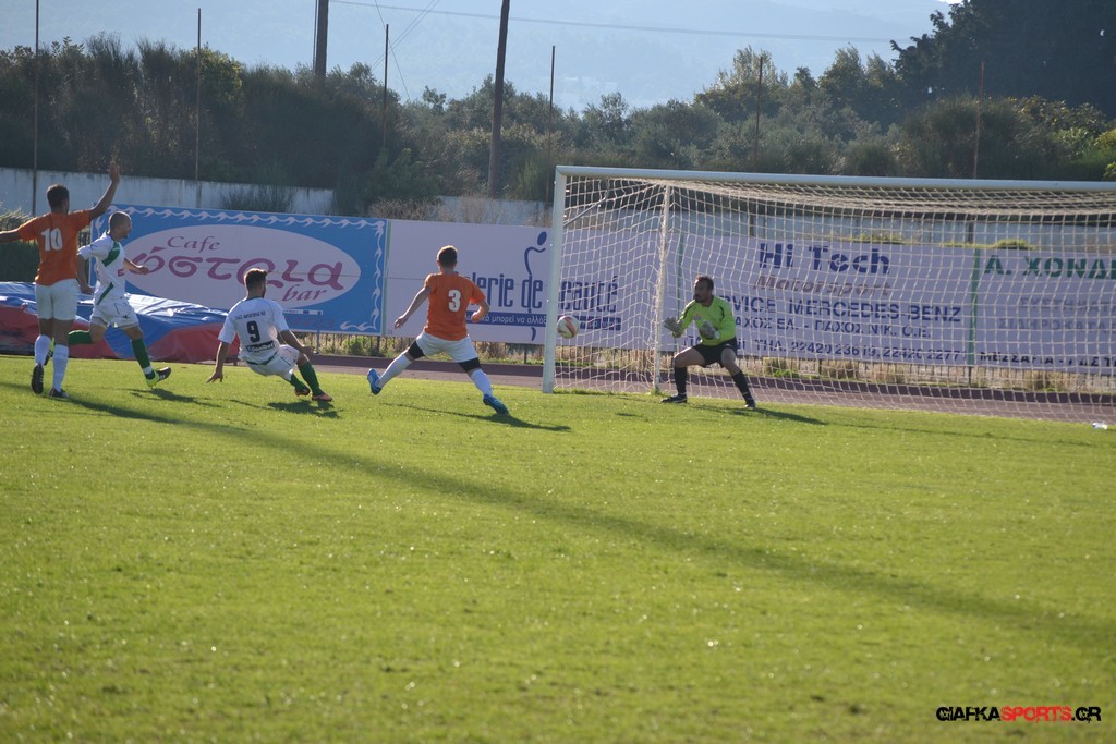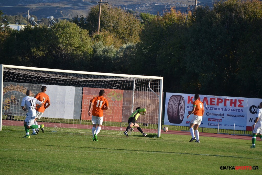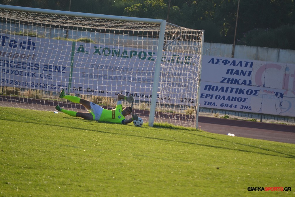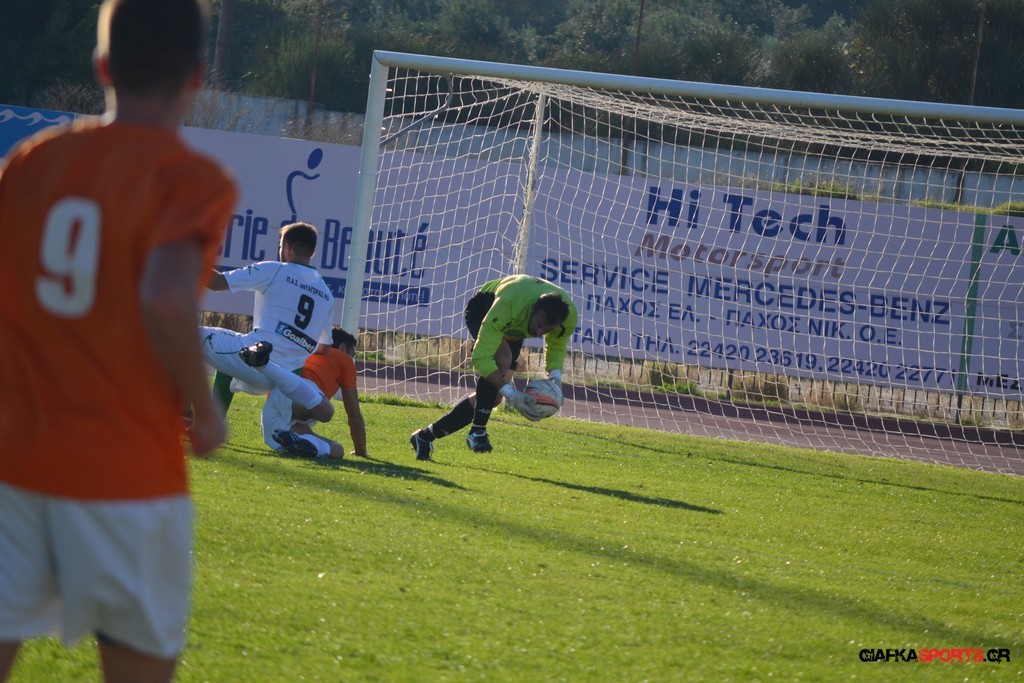 53′ Δυνατό σουτ του Καρπαθάκη, μπλόκαρε στην αριστερή του γωνία ο Τσαραπατσάννης.